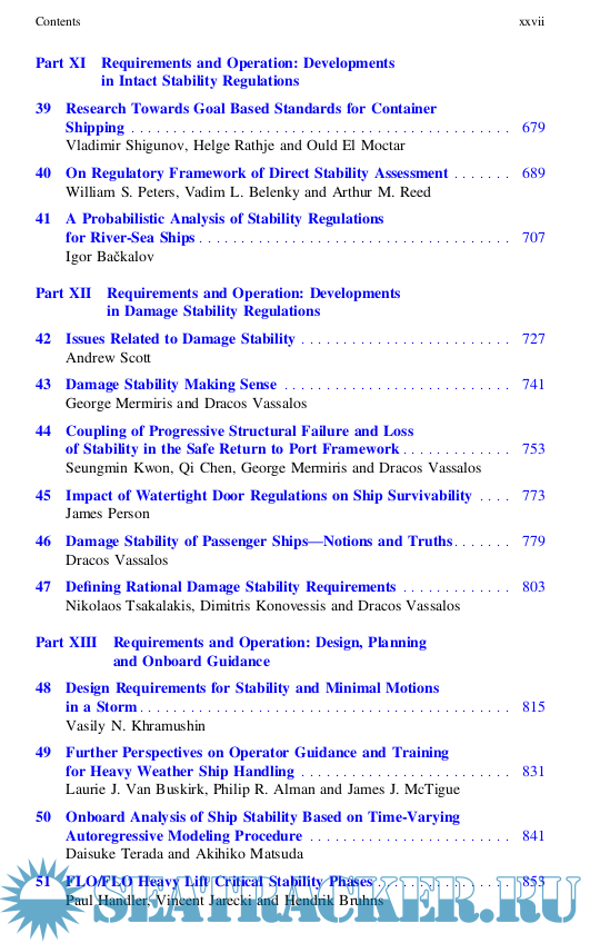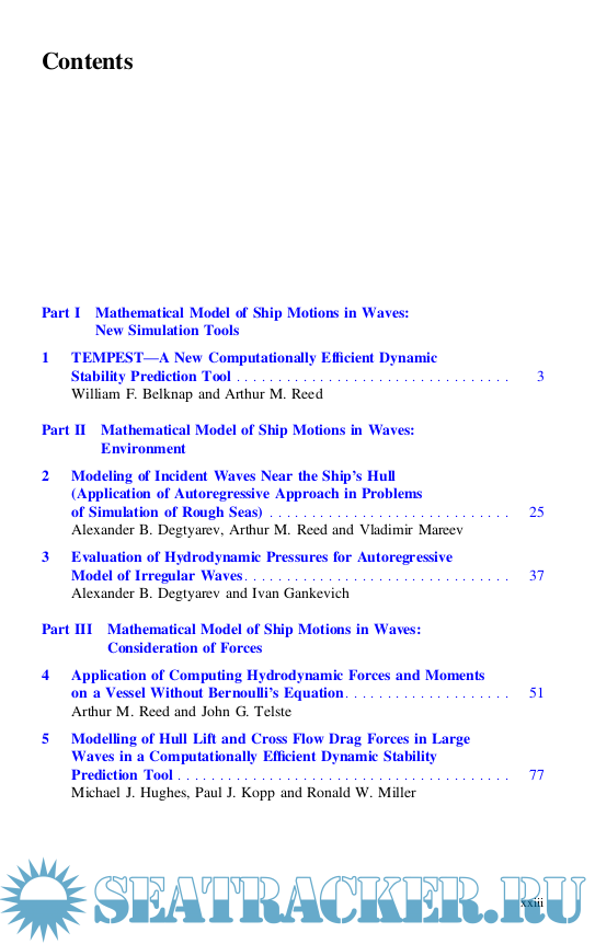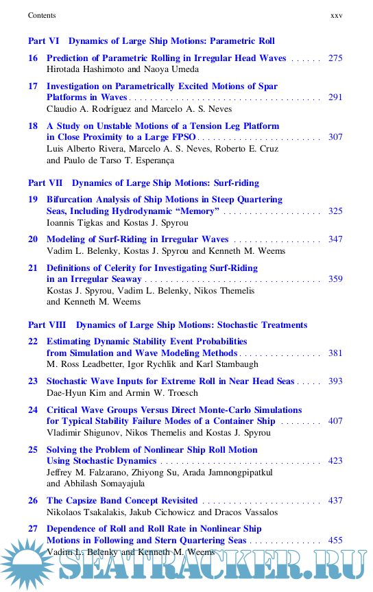 The book consist of four parts: Mathematical Model of Ship Motions in Waves, Dynamics of Large Motions, Experimental Research and Requirements, Regulations and Operations.