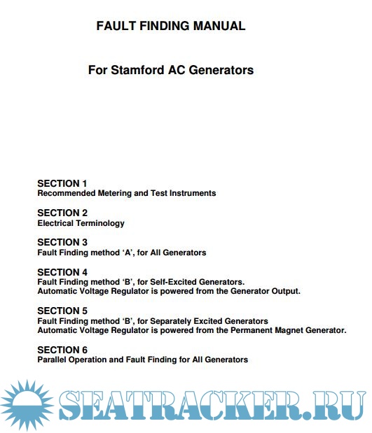 Fault finding manual for self excited and separately excited generators - Stamford [2010, PDF]