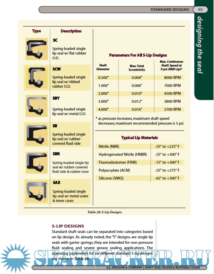Description: This design guide provides data on a widely used type of seal: the shaft seal. As you review the contents, please keep in mind that the many materials and designs featured in this guide are just part of the wide variety of sealing solutions offered by RL Hudson.