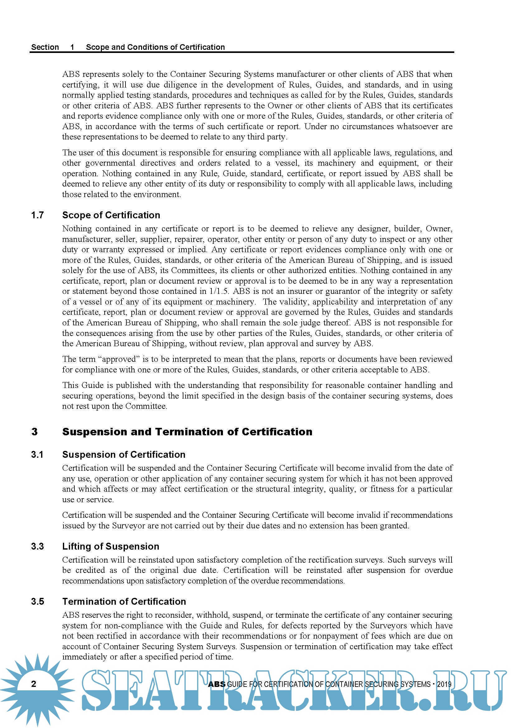 Description: The Guide for Certification of Container Securing Systems was first published by ABS with input and advice from industry. When requested by the Owner, ABS will issue certificates for container securing systems which have been constructed and installed according to the requirements of this Guide. However, such a certification is not a classification requirement.