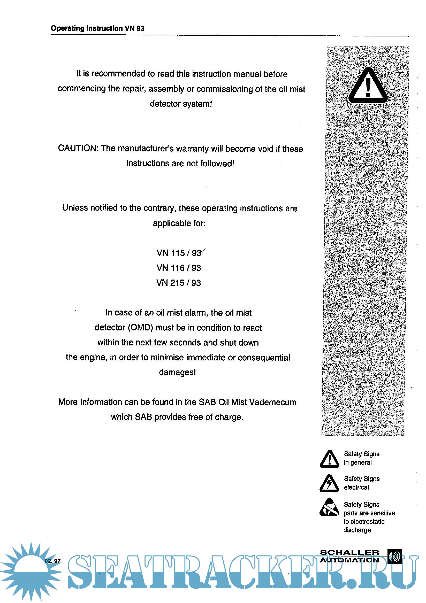 oil mist detector vn115,116,215, operating instruction VN93