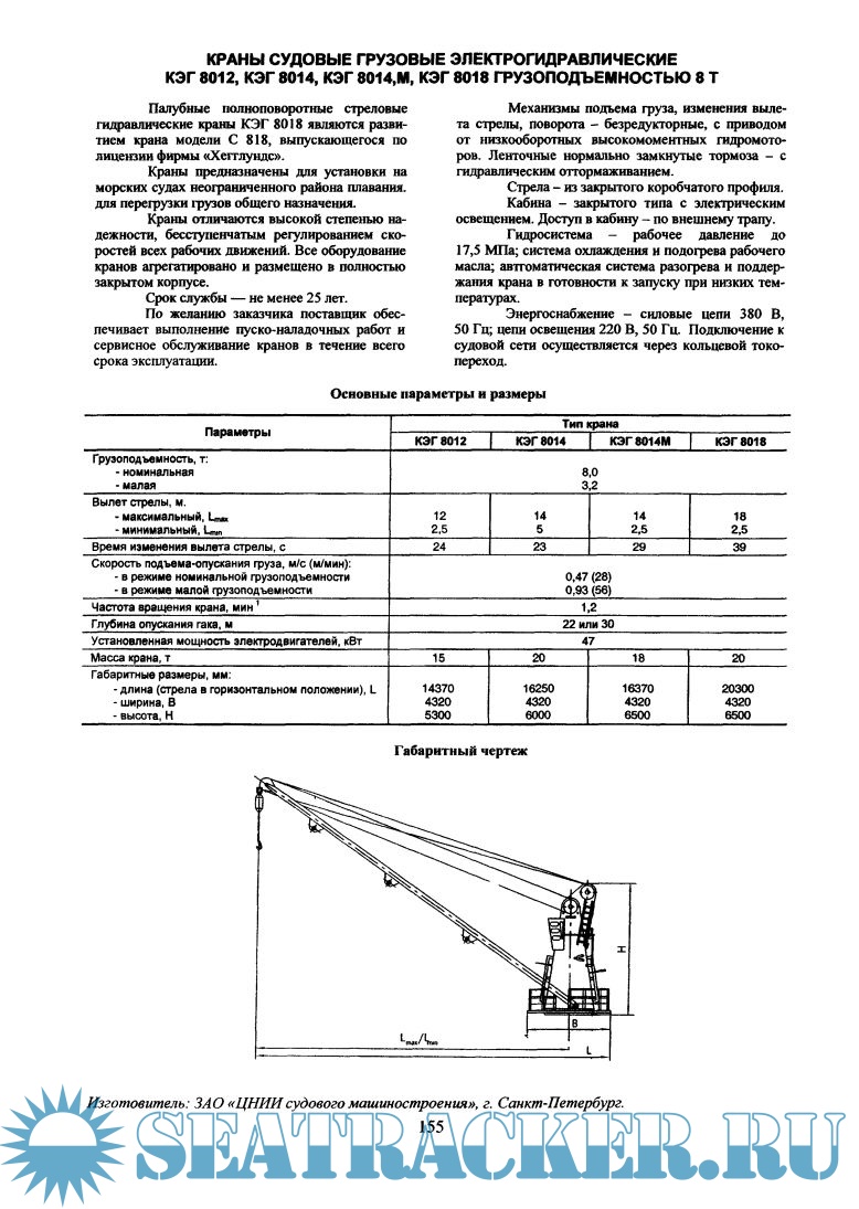 В каталоге представлены краны мостовые, козловые, башенные, консольные, а также судовые и портовые.