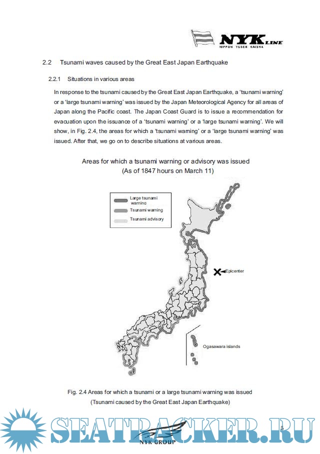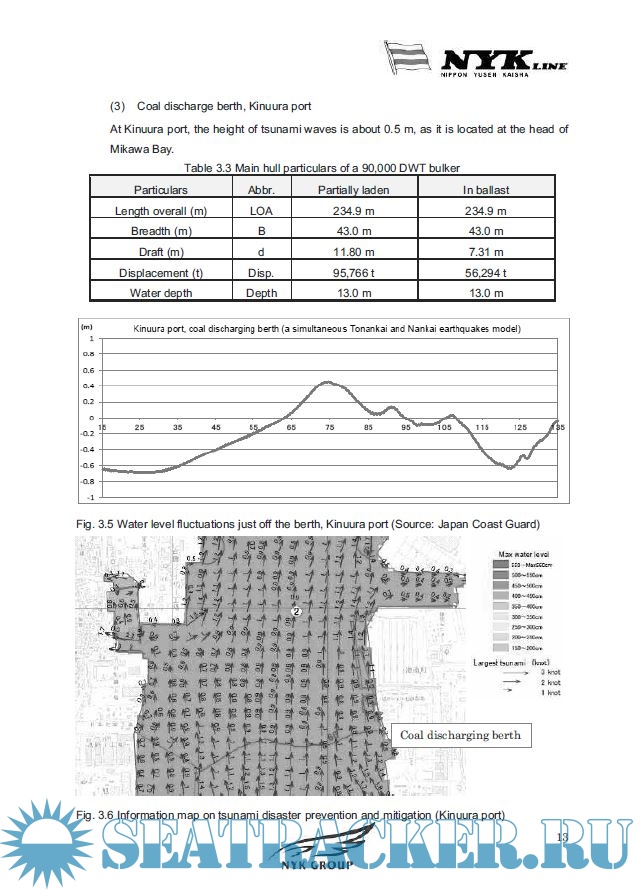 Description: NYK has drawn upon the lessons learned from the tremendous tsunami damage sustained by vessels after the Great East Japan Earthquake in March of last year to create tsunami-response guidelines for ships in port. The guidelines, the first to be developed for Japan, were presented on May 23 at a meeting hosted by the Japan Institute of Navigation.