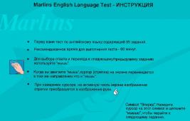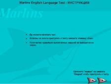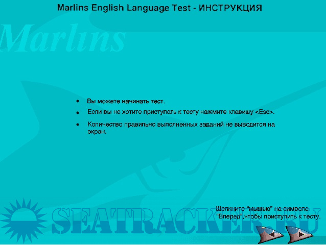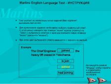 Какие-либо картинки к вопросам отсутствуют. Просмотреть правильные или неправильные ответы невозможно. Можно только увидеть общий результат теста в %, по таким параметрам в % как: Listening , Reading , General. Требования в Компаниях - не менее 65% общий результат прохождения аттестации. Но в Лондонском "Зодиаке" не менее 90%. тестирование проводится в "обучающем" (когда пользователю автоматически предлагается правильный ответ) и "экзаменационном" режимах. Результаты тестирования фиксируются в виде отчетов, которые далее предлагается распечатать на принтере. На основании полученных результатов программа дает рекомендации по изучению того или иного раздела Marlins Progress Test. отличное пособие для самопроверки.