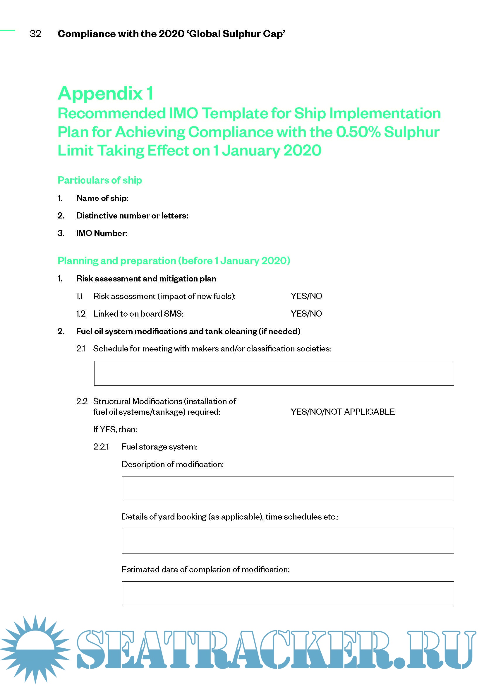 Guidance to Shipping Companies and Crews on Preparing for Compliance with the 2020 ‘Global Sulphur Cap’ for Ships’ Fuel Oil in Accordance with MARPOL Annex VI
