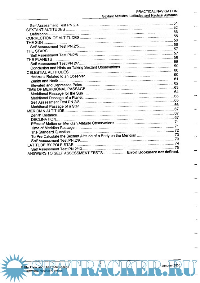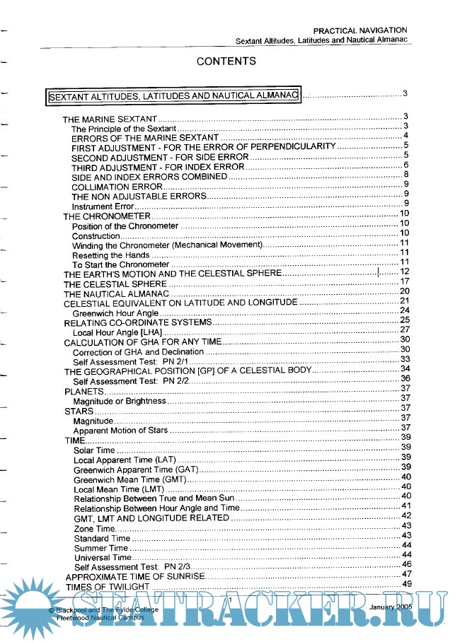 Year: 2005 Language: english Author: Blackpool and The Fylde College Fleetwood Nautical Campus Genre: Training courses Publisher: Blackpool and The Fylde College Fleetwood Nautical Campus Format: PDF Quality: OCR with errors Pages count: 76 Description: Notes on Practical Navigation - Sextant Altitudes, Latitudes and Nautical Almanac.
