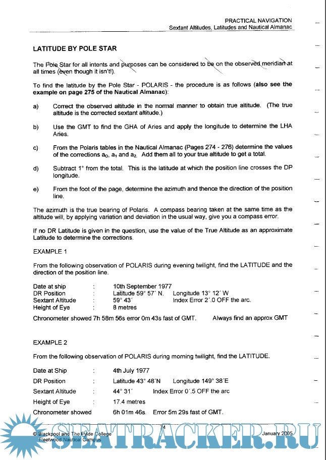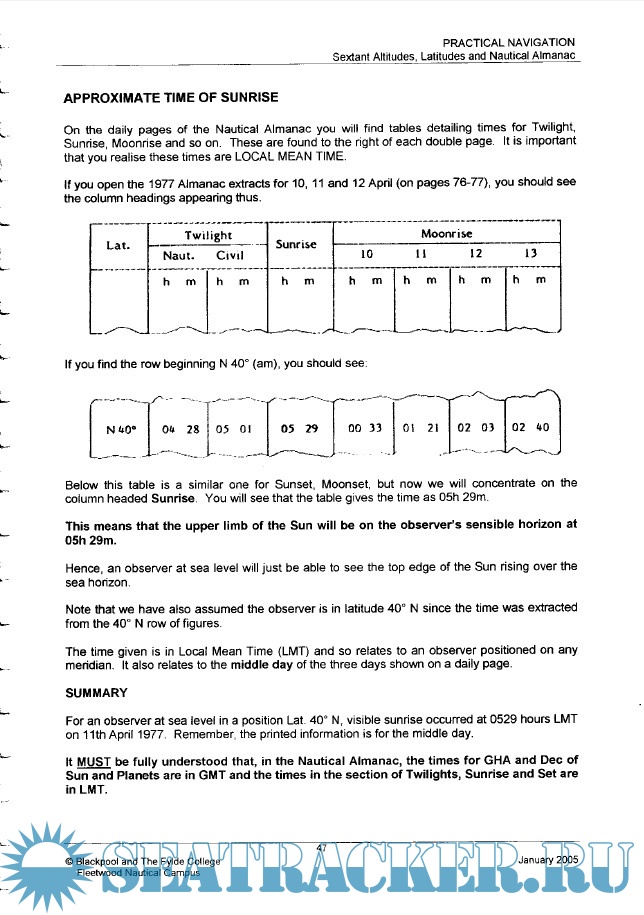 Practical Navigation - Sextant Altitudes, Latitudes and Nautical Almanac
