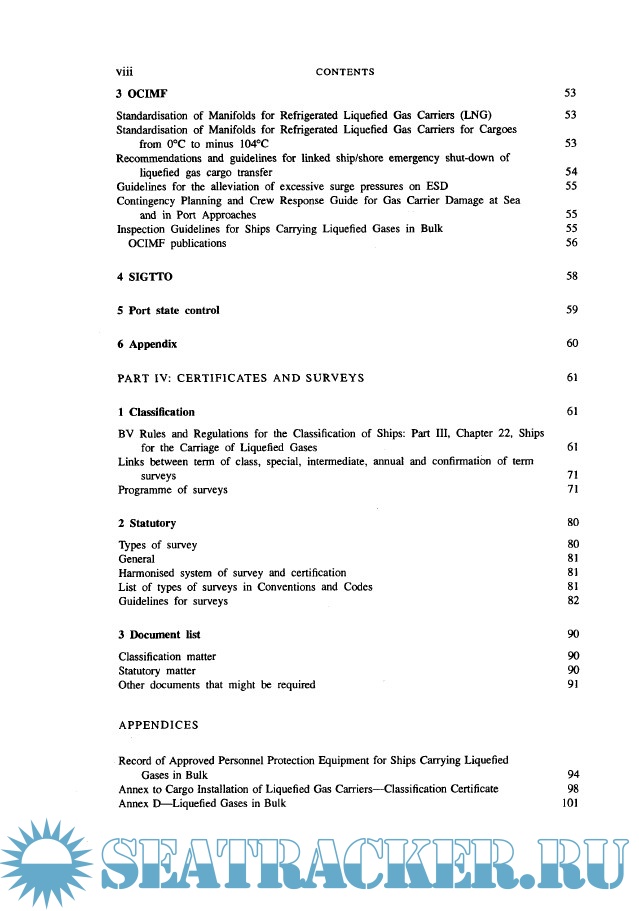 Year: 1997 Language: english Author: Bureau Veritas Publisher: LLP Edition: 2nd ISBN: 1-85978-109-8 Format: PDF Quality: Scanned pages Pages count: 143 Description: The aim of this publication is to summarize the different regulations applicable to gas carriers and not to supersede them. Therefore this publication must be read together with the Codes and other documents.