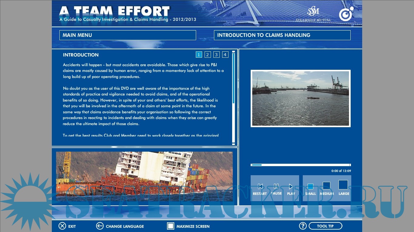 Description: Accidents will happen - but most accidents are avoidable. Those which give rise to P&I claims are mostly caused by human error, ranging from a momentary lack of attention to a long build-up of poor operating procedures.No doubt you as the user of this DVD are well aware of the importance of the high standards of practice and vigilance needed to avoid claims, and of the operational benefits of so doing. However, in spite of your and others' best efforts, the likelihood is that you will be involved in the aftermath of a claim at some point in the future. In the same way that claims avoidance benefits your organization so following the correct procedures in reacting to incidents and dealing with claims when they arise can greatly reduce the ultimate impact of those claims. To get the best results Club and Member needs to work closely together as the principal players in the claims handling team from the time of the incident until the resolution of the claim. This DVD is designed to help you to play your part in that process.-Происшеcтвия время от времени случаются, но большую часть происшеcтвий можно избежать. Случаи, ведущие к искам, чаще всего происходят по таким причинам, как человеческие ошибки, потеря внимания и несоблюдение установленных процедур.