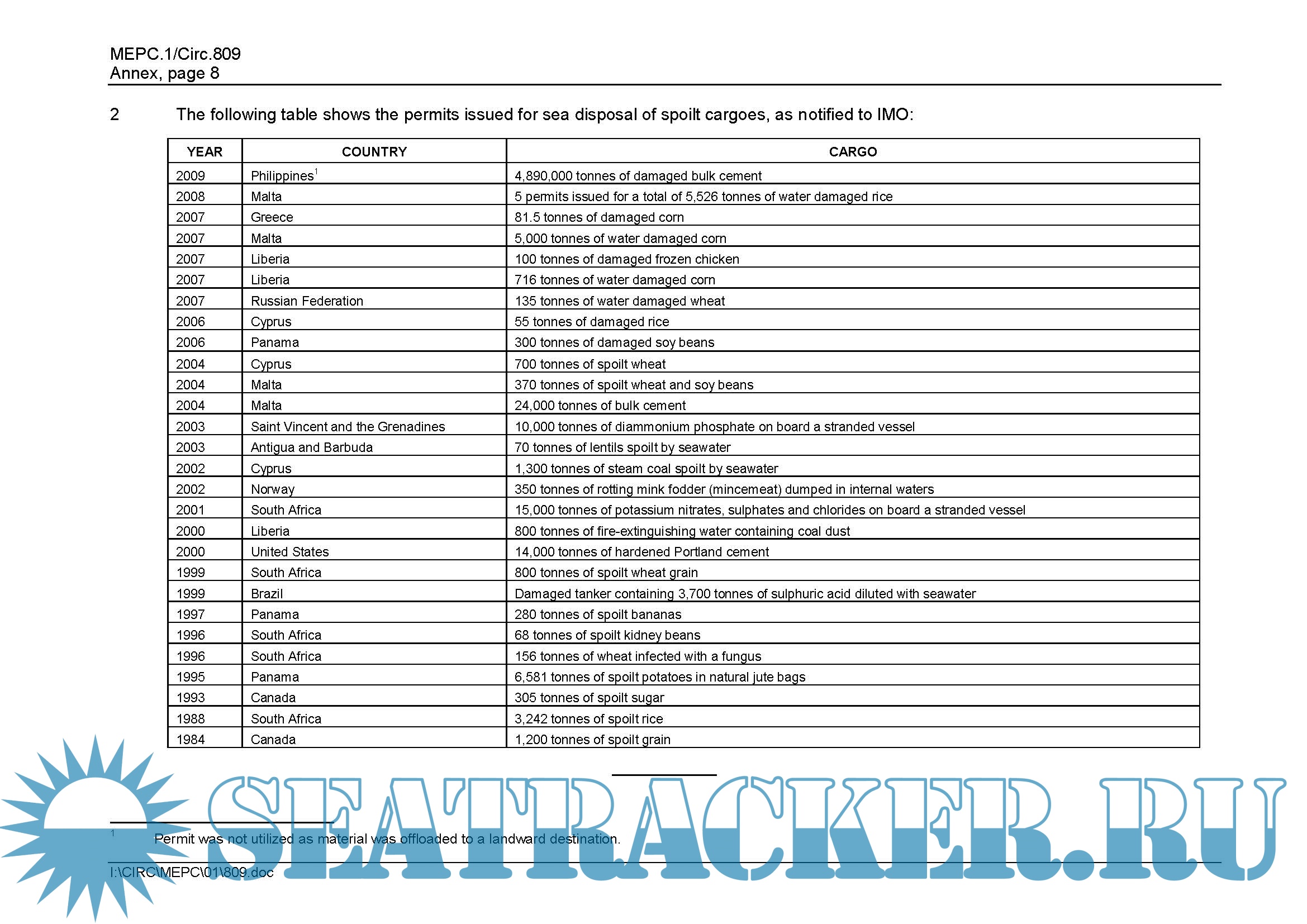 Page 9 ANNEX - SPOILT Cargoes Considered for Sea Disposal