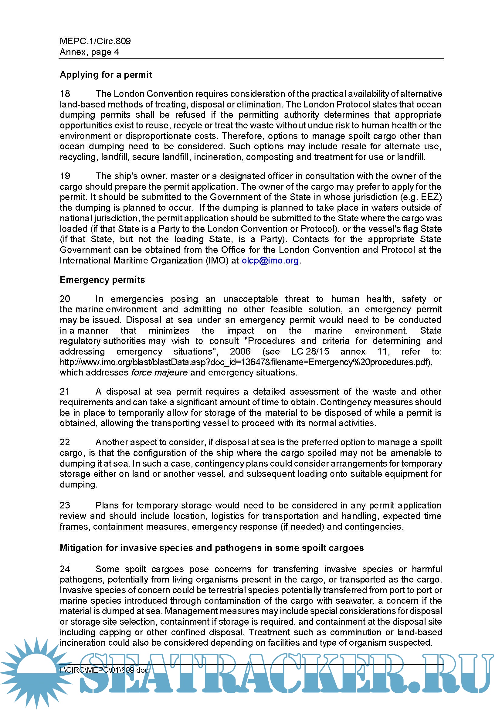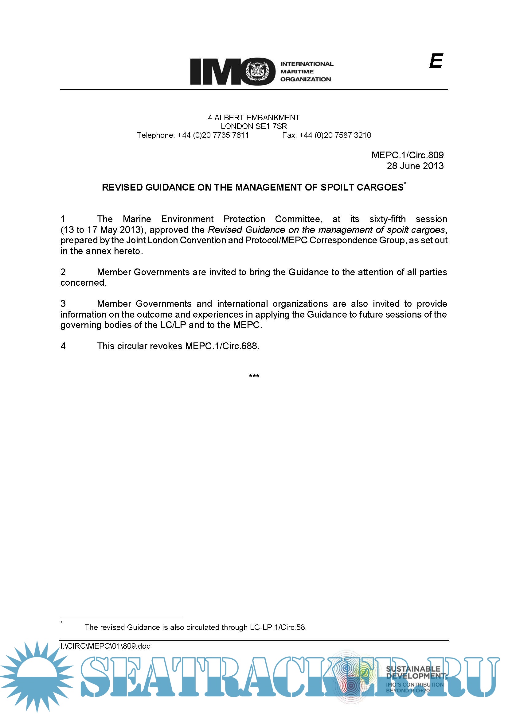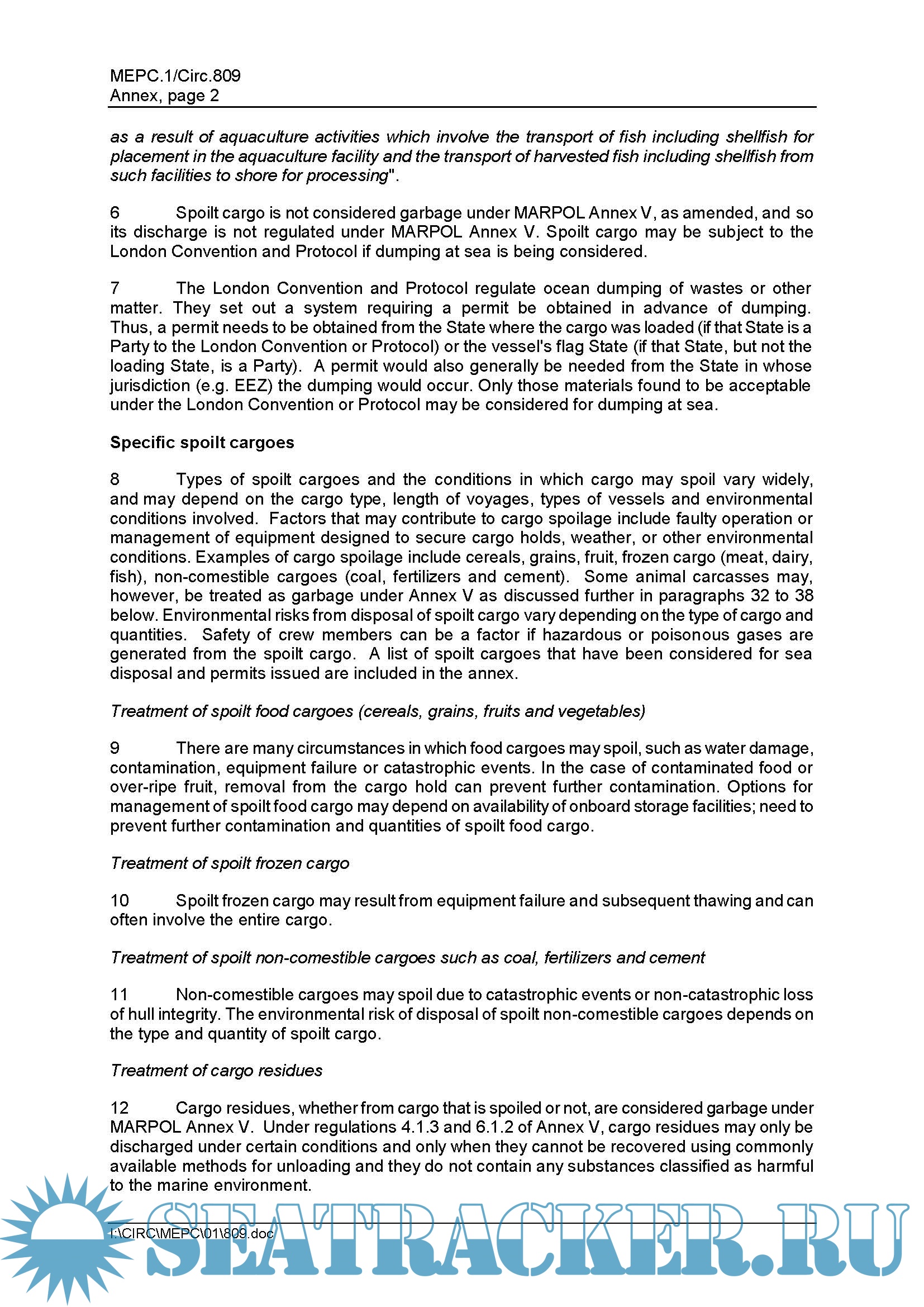 Revised Guidance on the Management of Spoilt Cargoes MEPC.1/Circ.809