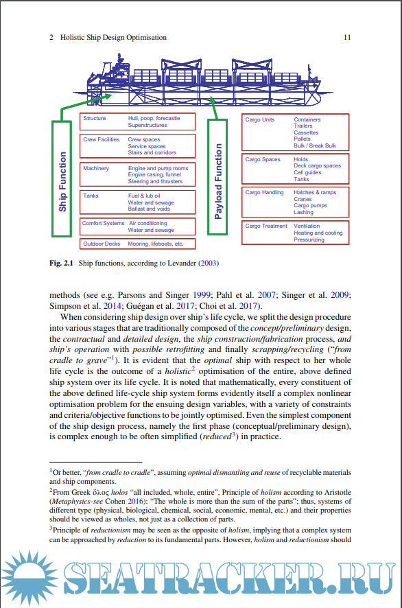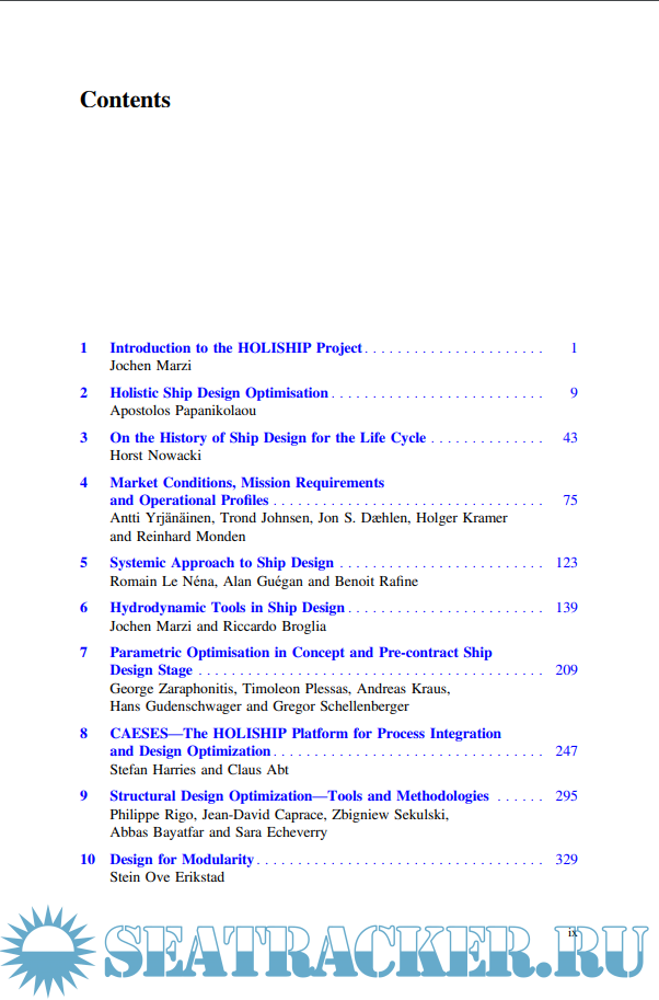 Year: 2019 Language: english Author: Apostolos Papanikolaou Genre: - Publisher: Springer International Publishing Edition: 1st ISBN: 978-3-030-02810-7 Format: PDF Quality: eBook Pages count: 501 Description: This book introduces a holistic approach to ship design and its optimisation for life-cycle operation. It deals with the scientific background of the adopted approach and the associated synthesis model, which follows modern computer aided engineering (CAE) procedures. It integrates techno-economic databases, calculation and multi-objective optimisation modules and s/w tools with a well-established Computer-Aided Design (CAD) platform, along with a Virtual Vessel Framework (VVF), which will allow virtual testing before the building phase of a new vessel. The resulting graphic user interface (GUI) and information exchange systems enable the exploration of the huge design space to a much larger extent and in less time than is currently possible, thus leading to new insights and promising new design alternatives. The book not only covers the various stages of the design of the main ship system, but also addresses relevant major onboard systems/components in terms of life-cycle performance to offer readers a better understanding of suitable outfitting details, which is a key aspect when it comes the outfitting-intensive products of international shipyards. The book disseminates results of the EU funded Horizon 2020 project HOLISHIP.