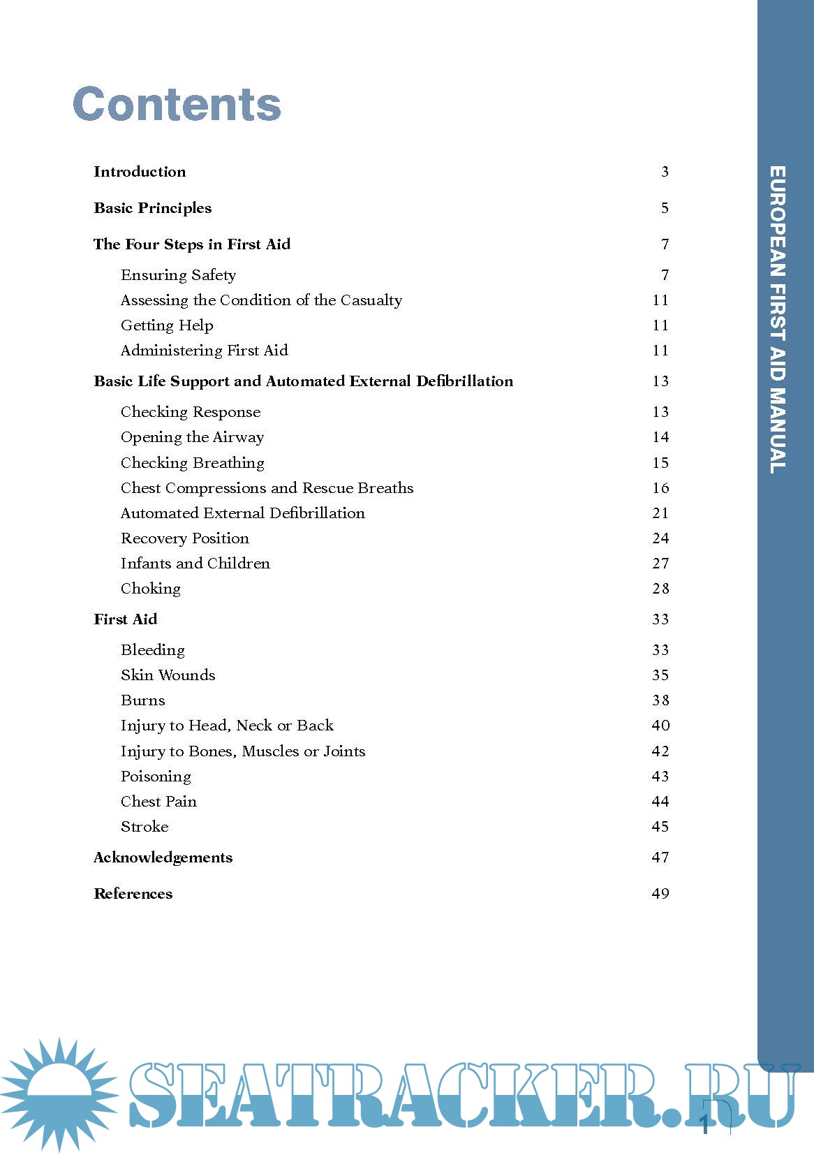Year: 2006 Language: english Author: Training Department, Belgian Red Cross-Flanders Genre: Handbook Format: PDF Quality: eBook Pages count: 56 Description: Accidents, injuries and illnesses can happen quickly. Immediate help often depends on family members, colleagues, or bystanders. With knowledge of first aid anyone can offer help in these situations. But obviously, prevention is always better than cure! But to be of real help to the casualty it is important that you administer first aid correctly. Doing it wrong may be of no help or may even prove harmful. This is why we have based the European First Aid Manual (EFAM) on the latest scientific first aid guidelines and had it validated by specialists. These guidelines cover the best techniques known today and guarantee better first aid practices.