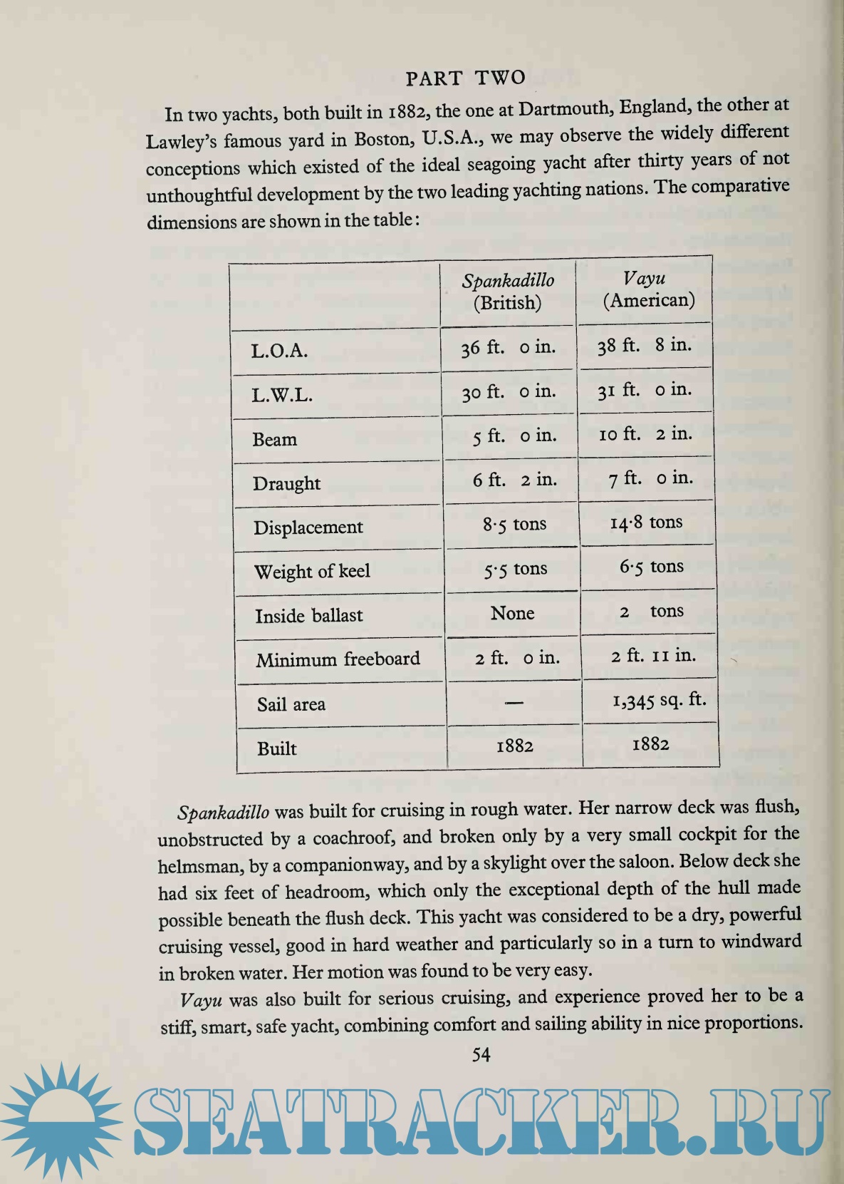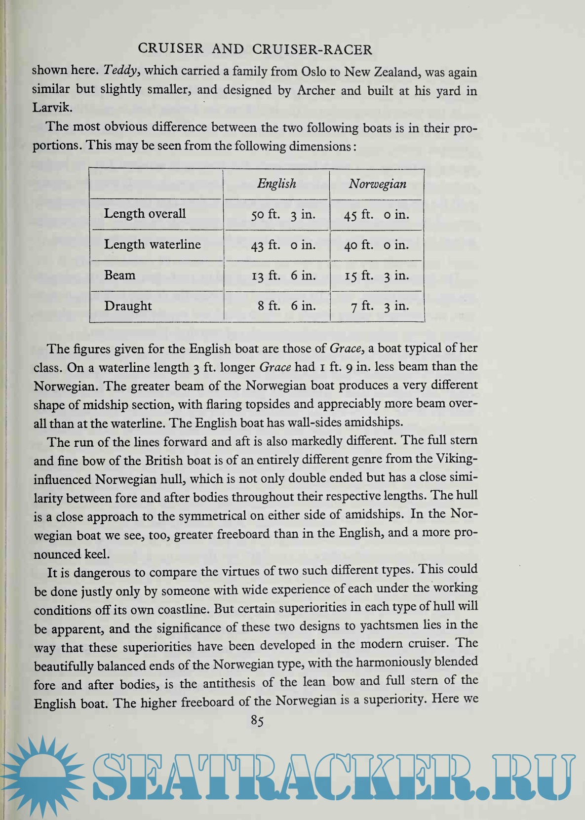 Yachting was as exclusive, as brilliant, as undemocratic as a Florentine palace. And it was creative. Some of the most original and talented minds in several countries devoted themselves to the creation of the yachting fleets — men who might have reached the top in any sphere of imaginative work. They had the opportunity to exercise their talents fully, on large steam yachts, small half- decked racers, cruising schooners, the loftiest racing cutters, high-speed motorboats, and all these perhaps in the course of a year. There are few such men left, and they must become fewer, not because there is lack of appreciation for their work, but because nobody can pay for it. The practitioners of such an art become rusty when they have to devote themselves to a few small craft each year, all of them much the same. We may say: The smaller the boat the better the sport , and an inverted snobbery may produce the current feeling that a large yacht is faintly indecent. True, the sport is good, equally so, whatever the size of the boat; and many yachtsmen still know a good boat and will pay what they can for it. But what they are able to afford will probably be a small, relatively simple craft produced by men exercising half their talents. Before we consider all that yachting has gained by this change — and possibly the credit entries are longer than the debit — it is well to have paused over what has been lost. An art is dying. Yachting may be becoming a better sport, but its creative life is failing. Men still dream lovely ships, and dreams they remain.