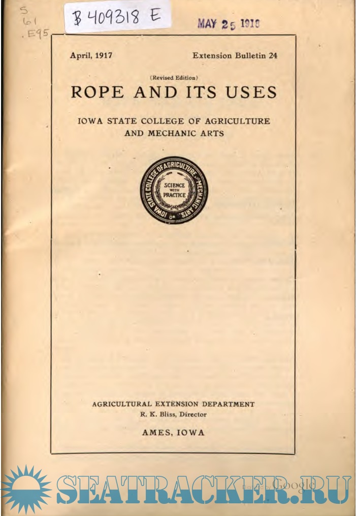 Description: A rare and historic book authored by AA Burger in 1917. This book was digitised by Google Books and made available in the public domain (copyright expired or non-existent). It contains a reference to the Butterfly knot which the author refers to as a "Lineman's rider" (see p23). This book pre-dates the classic Wright and Magowan report in 1928 where the term 'Butterfly knot' was used. Переиздание оригинала 1914 года. Редчайшая книга по узлам 1917 года, изданная в Айове, как учебное пособие для телеграфистов США.
