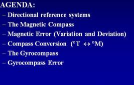 Description: Comprehend the differences between true, magnetic, gyrocompass, and relative direction reference systems, and apply proper procedures to make direction conversions from any one system to any other.