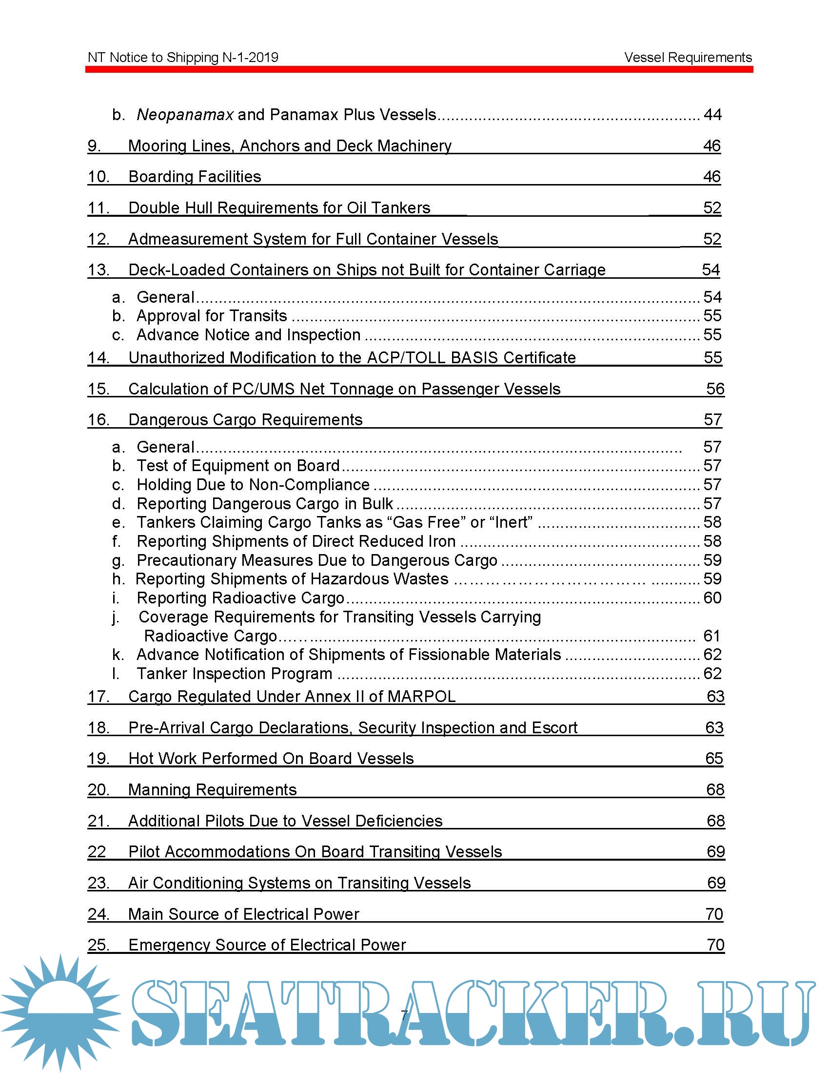 Panama Canal Authority NT Notice to Shipping No. N-1-2019 Vessel Requirements