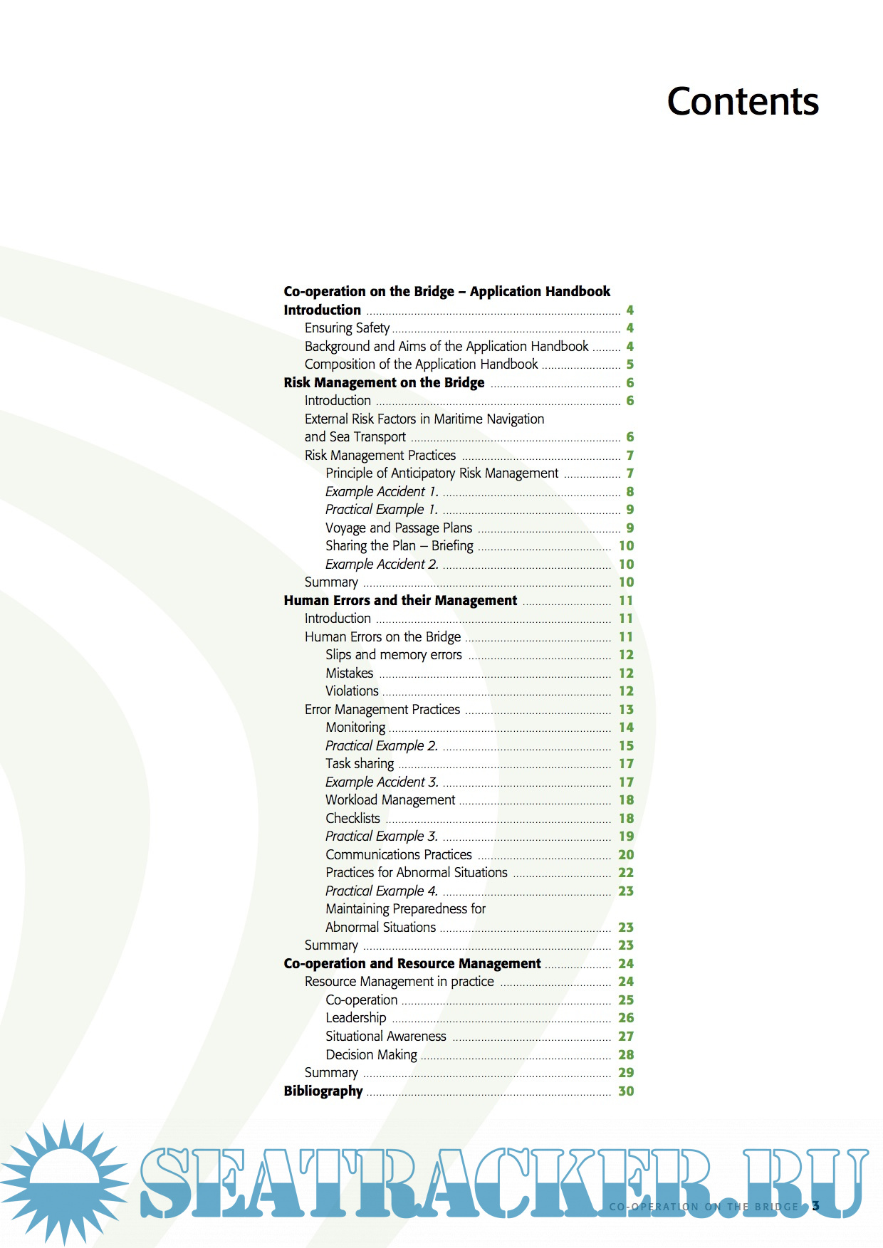 Description: Co-operation on the bridge is a central part of risk and error man- agement. Efficient resource management is based on open com- munication, explicit leadership and coordination, active maintain- ing of the situational awareness and the use of all available information when making decisions.