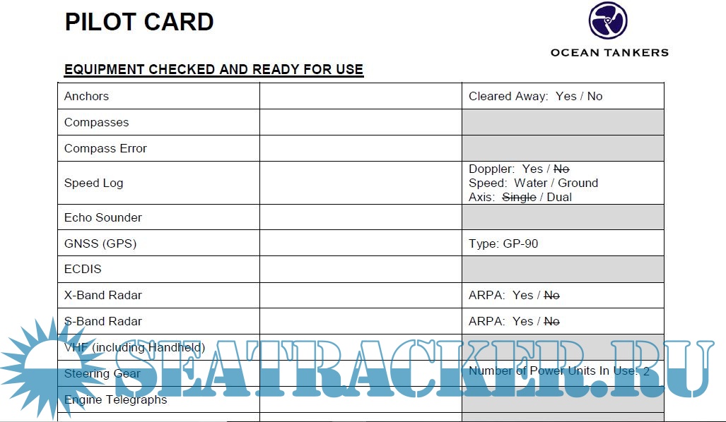 Check list for pilotage