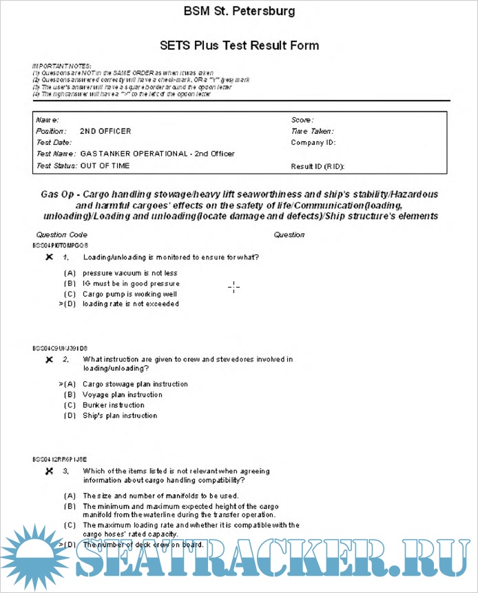 Description: Answers to SETS TEST Gas Operational Level 2nd Officer