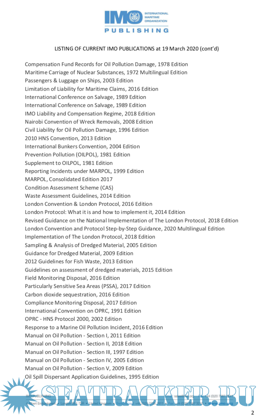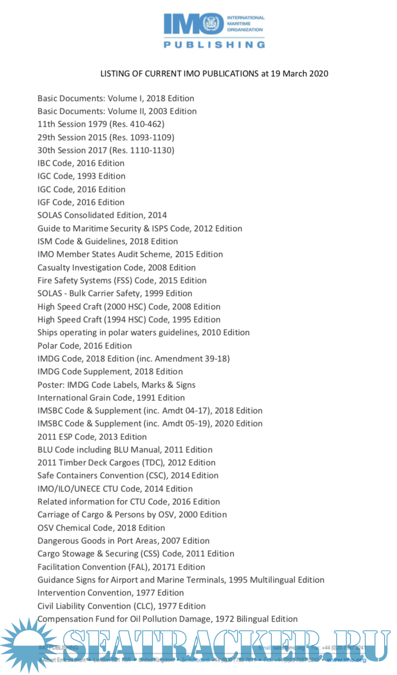 Description: Listing of current IMO publications at 19 march 2020, no more