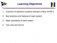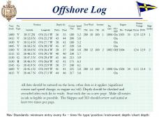Lectures Common Sailing Discrepancy Report Standard Operating Procedures (SOP) for Large Sail Training Craft Equipment MkII Electronics Electrical Training Navigation Chart Prep Check List Intro to Navigation Navigation 101 Navigation 102 Rules of Road Navy 44 Navy 44 MK II Information • Electronics Manuals - FURUNO NAVNET TZT14 - FURUNO AIS FA50 - FURUNO Weatherfax - IC M506 VHF - ICOM M802 SSB Radio Navy 44 MK I Information • Systems Lecture • Sail Configurations • How to rig the Preventer • Basic Sail Trim • Wind ranges for sails • Electronics quick reference • Quick reference for operating the stove • Chinese mooring the Navy 44 • Back and Fill on a Navy 44 • Flooding vs Bilge pumps • An orientation on the Navy 44 • Getting a Navy 44 underway • Tech manuals - GPS (Garmin 152) - HF SSB (SEA 222) - Radar (R20) - Sailing Instruments - Hecta Depth (NA 1-8) - Sailing Instruments - Hornet 4 (NA 1-8) - Sailing Instruments - Hydra 330 (NA 9-20) - System Voltage Status Monitor - VHF (Icom 100) - VHF (Icom 120) - Weatherfax - Electric Bilge Pump - Manual Bilge Pump - FW Foot Pump - LPG Solenoid - Racor filter - Reefer (Technautics) - Shower Sump Pump - Steering (Edson) - Throttle Control - Westerbeke Diesel - Winches Navy 26 • Navy 26 Standard Operating Procedures • Proficiency Sailing Instruction Sailing Guides • Tacking • Gybing • Man Overboard Prevention, Preparation, and Victim Procedures • Man Overboard Recovery (Non-Spinnaker) • Man Overboard Recovery (Spinnaker) • Headsail Changes • Reefing • Shaking a Reef • Rigging Storm Sails • Rigging Spinnaker • Setting and Flying the Spinnaker • Gybing the Spinnaker • Dousing the Spinnaker • Diagrams - Deck - Top View - Deck - Side View - Cockpit Layout - Cabin Layout - Sail Plan - Thru-hulls - Polars • Troubleshooting Systems - Engine - Bleeding the Engine - Head • Pictures - Aerial view of the boat sailing - View of the bottom out of the water - View looking aft toward quarterberth - View looking forward into forepeak - View of the prop & shaft - View of the fwd bottom - View of the aft bottom Navy D-Qual • Coastal and Offshore Personnel Qualification Standard • Navy D Qual Study Guide