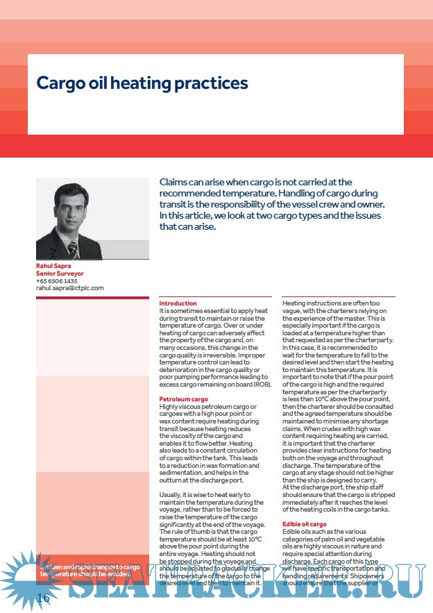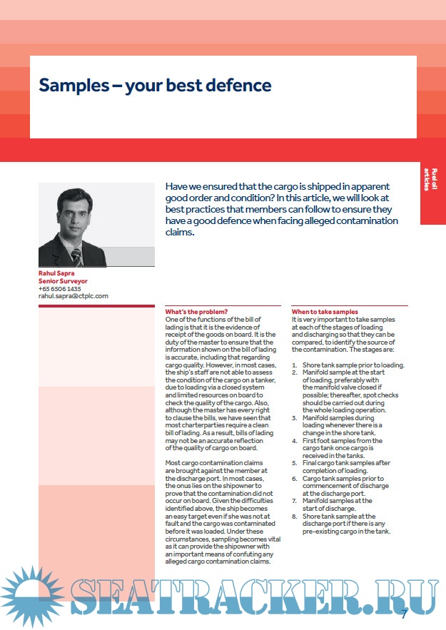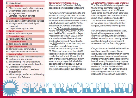 make up 44% of The Standard Club’s tanker cargo claims from 2010 to 2014, with a value of just over $25m. Club have put together a wide variety of articles in this special edition, ranging from cargo-specific topics to the controversial issue of blending, plus various legal articles.