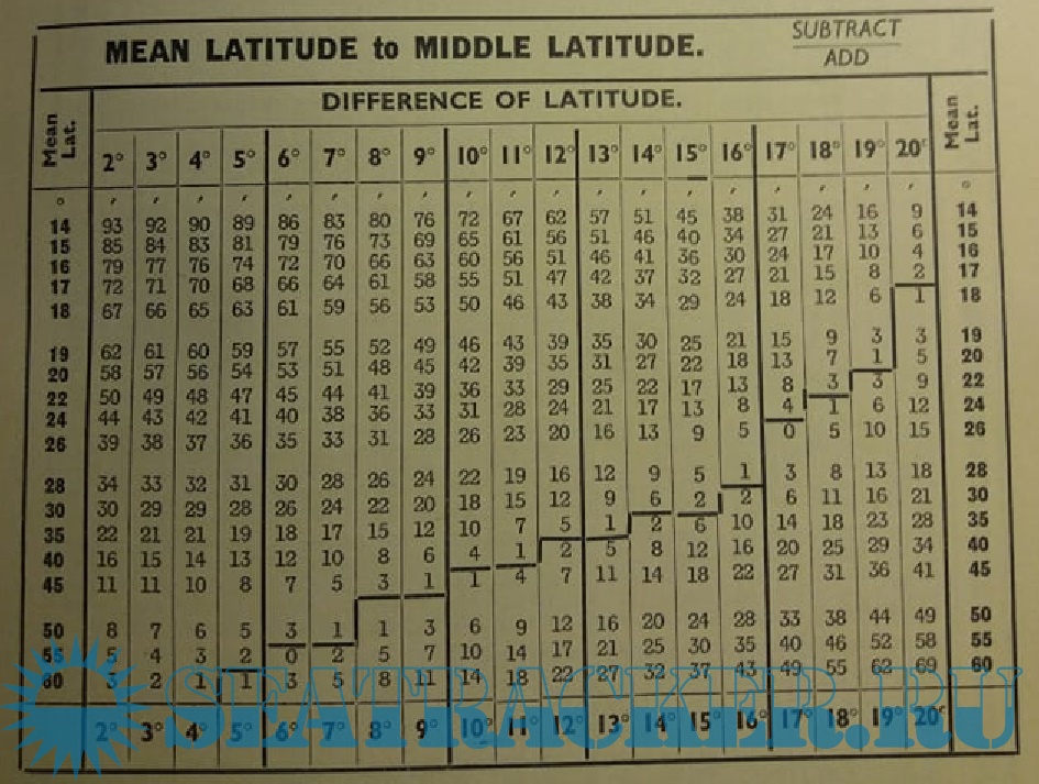 Mean Latitude to Middle Latitude Correction Table
