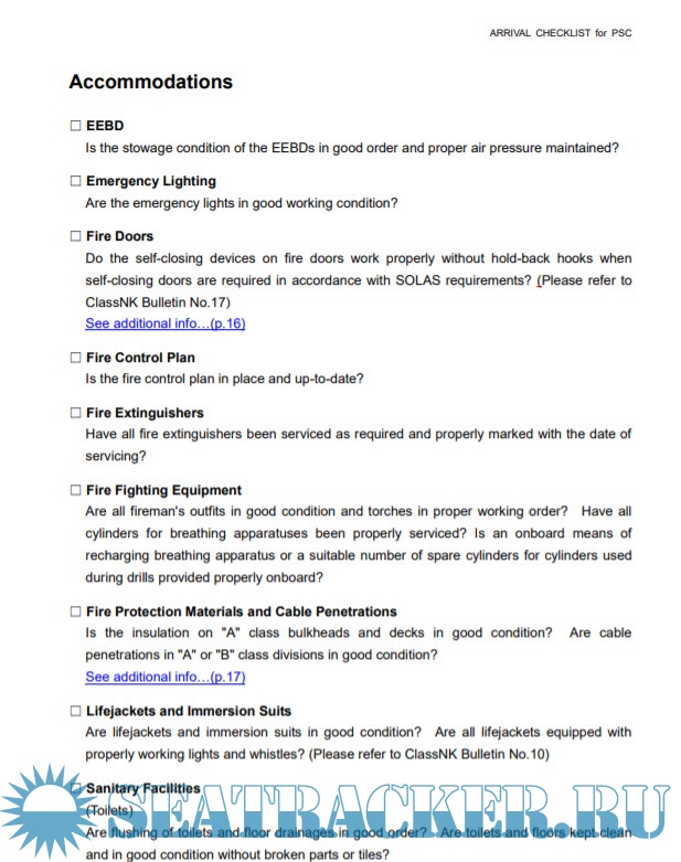 Class NK arrrival checklist for PSC
