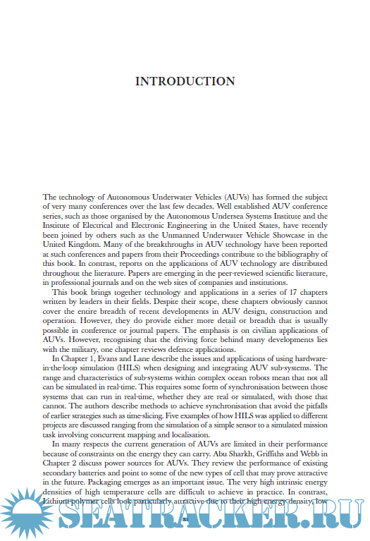 Year: 2002 Language: english Author: Gwyn Griffiths Genre: Technical book Publisher: CRC Press Edition: 1 ISBN: 9780415301541 Format: PDF Quality: eBook Pages count: 369 Description: Scientists from academies and industries in the maritime countries of the US, Britain, Norway, Russia, Italy, and Canada document the transition from the dream in the 1980s to the reality of robotic vehicles operating under the ocean for scientific research, defense, surveying, and industry. They emphasize civilian applications, though one study describes defense applications to recognize that the military is behind much of the development. Among other topics are power sources, advanced materials and their influence on structural design, propulsion systems, detailed seabed surveys, cargo carrying vehicles, and the legal regime.