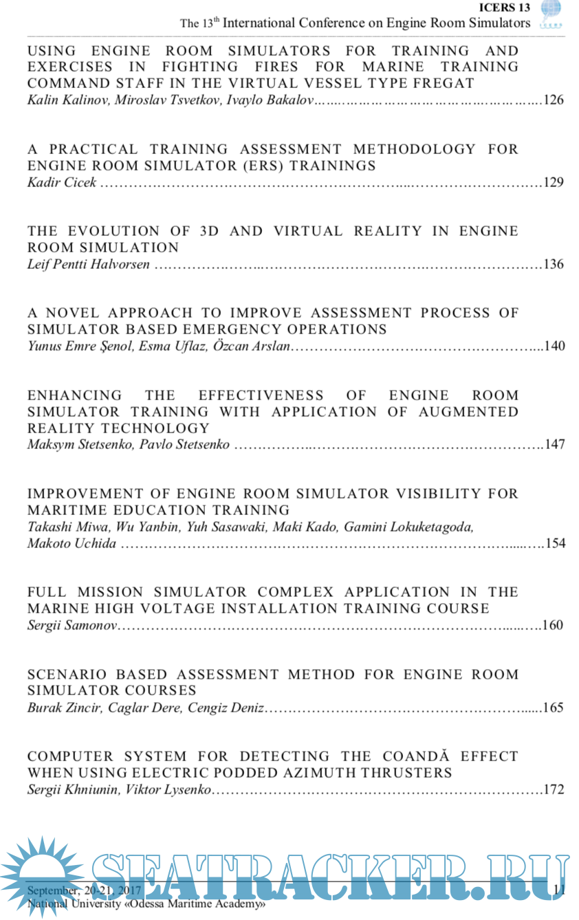 Description: Holding of ICERS13 provides a unique opportunity to exchange experience among professionals involved in production and operation of marine engines, mechanisms and systems, creation and use of engine room simulators in marine engineers training.