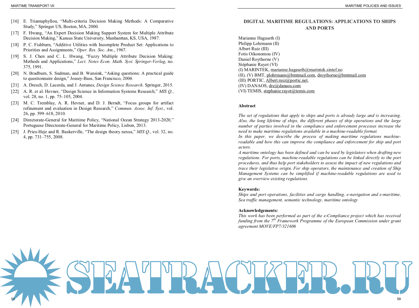 In this regard, protection of the port environment, safety and security have become key points for the development of modern maritime transport. In addition, the influence of human factor on board the ships has to be strongly considered as a decisive element for safe, secure and clean operations.