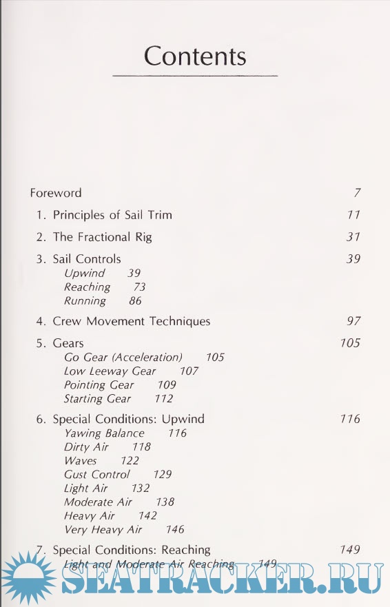 Description: A guide for racing covers the principles of sail trim, crew movement techniques, maneuvers, and control systems, and gives advice on adjusting to special conditions.