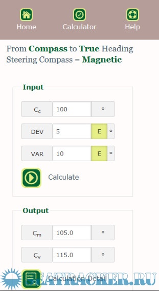 Further you can find a compass check calculating the deviation based on a true bearing and the type of steering compass used. Check the detailed calculation steps so that you understand how it works.