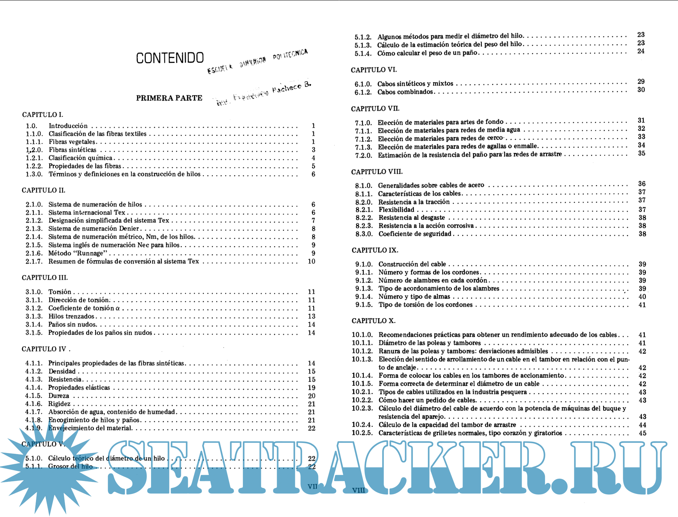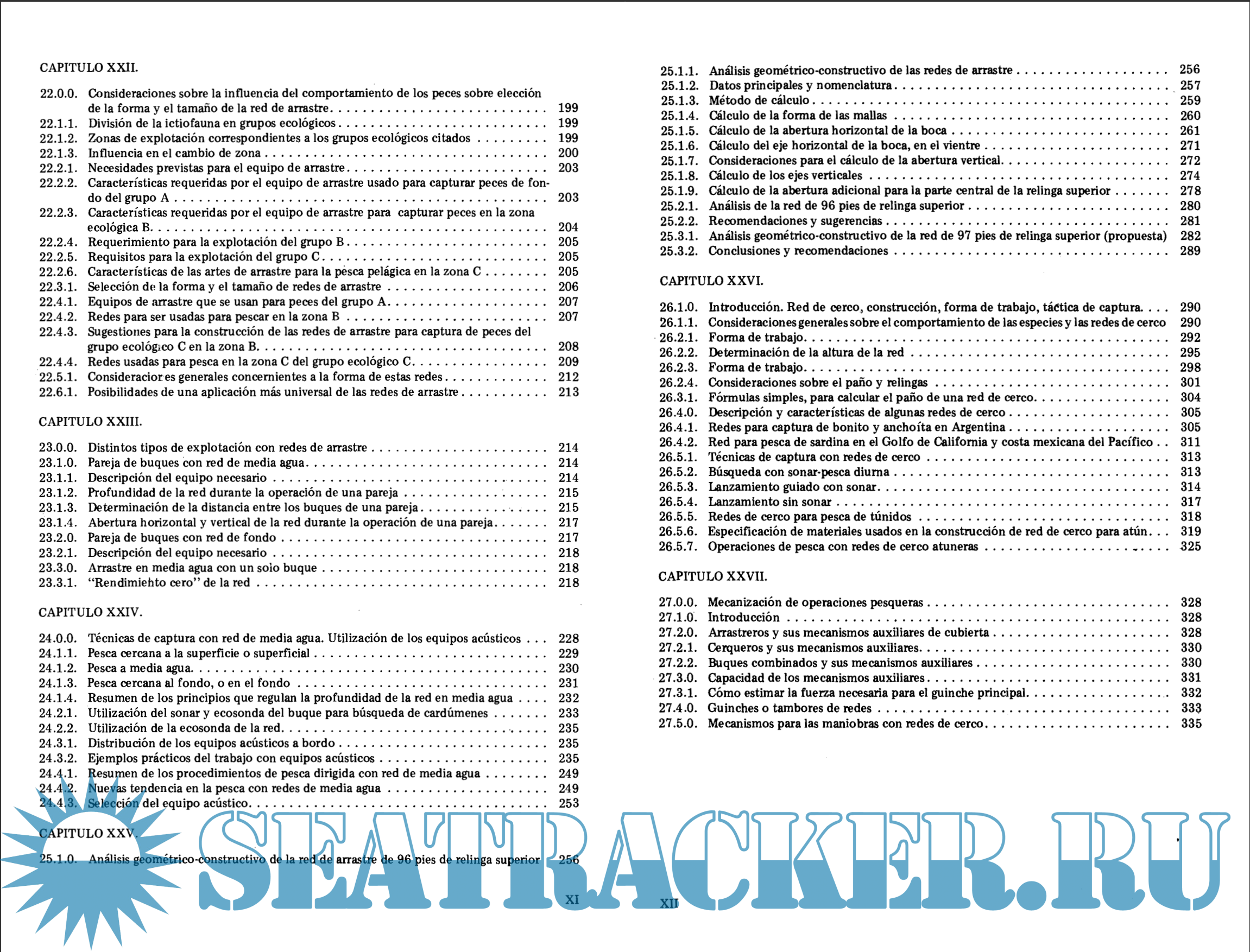 This book was prepared on the basis of the working papers prepared for the Workshop on Technology and the Arts and Methods of Fisheries carried out at the National Institute for Fisheries. This course was given by the Srs. S. L. Okonsky and L. W. Martini, specialists from the Country Technical Research and Development Project as part of the Government of Mexico's advice programme on the part of the Mexico / UNDP / FAO project.
