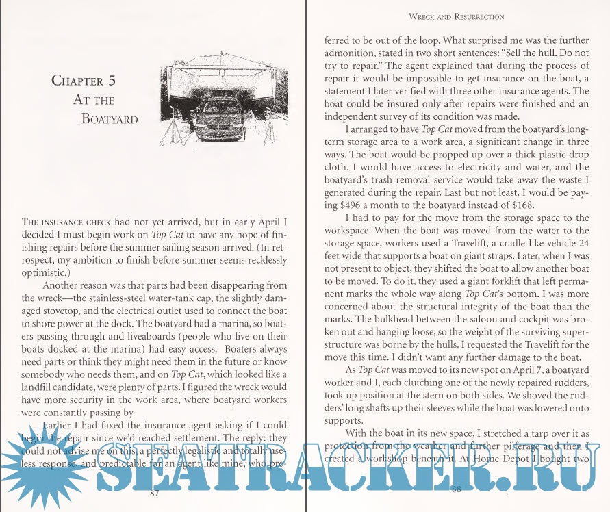 Year: 2001 Language: english Author: David Harris Genre: Technical book Publisher: Tortuga Books Edition: First ISBN: 9781893561038 Format: PDF Quality: Scanned pages Pages count: 195 Description: After my 32-foot catamaran sailboat, Top Cat, was wrecked during Hurricane Georges in September, 1998, I repaired it my self. This book is an account of my experiences with the wreck and the repair. Months of effort were required to get the insurance claim paid, though there were no disputed issues, and that is a part of this account. As a homeowner I had done simple plumbing, carpentry, and electrical work, but I had virtually no experience working on boat repairs and none at all with fiberglassing. I learned the necessary skills as the job progressed and sometimes I learned the hard way. My education in the basics of boat repair is also part of this story. The hands-on work of repair took six months, but the big gest part of the job was planning, organizing, and obtaining parts to replace those that were missing or damaged. Hundreds of let ters, faxes, e-mails and telephone calls were required to put Top Cat back together. I communicated with the insurance agent, the claims adjuster, the insurance company, the Florida Depart ment of Insurance, the boat manufacturer, equipment and parts suppliers, sailboat riggers, sailmakers, and many others.