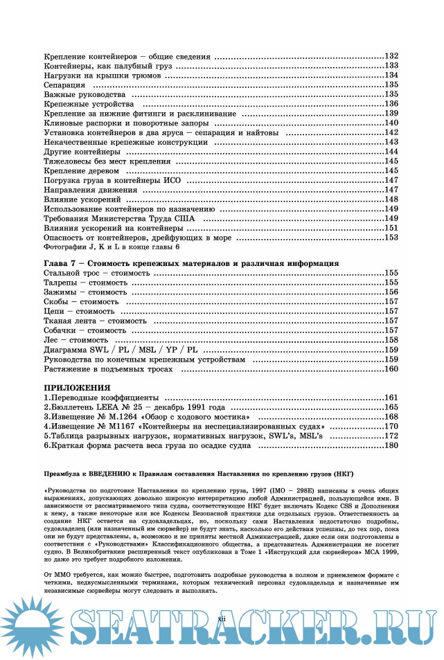 Описание: Книга включает меры предосторожности, полученные из жизненного опыта автора, которыми он делится с грузоотправителями и судовладельцами, а также включает преценденты по судебному следствию, если происходят аварии. Джон Нотт собрал воедино все доступные советы и руководства по креплению грузов, а Морской Институт опубликовал это в прекрасной и доступной форме. Эта книга покрывает все поле деятльности, от простого вопроса правильного использования тросовых зажимов до сложности задачи по вычислению полной схемы крепления.