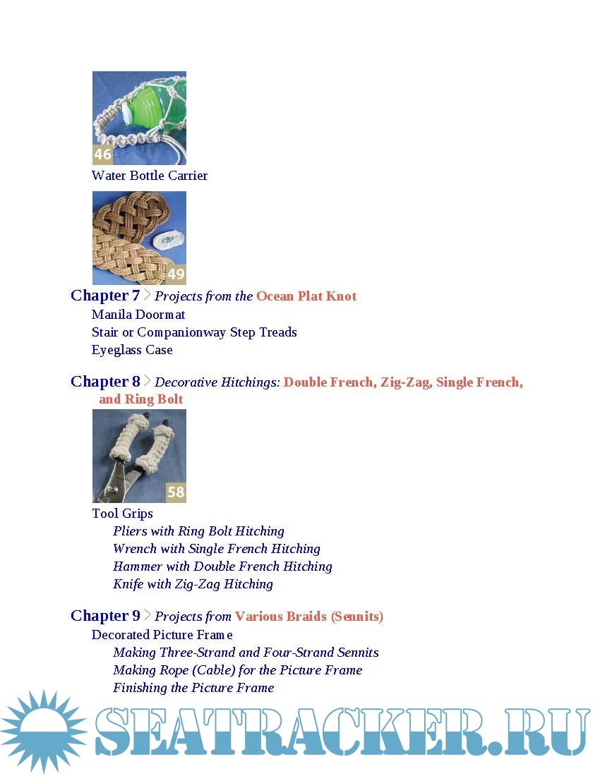 Year: 2014 Language: english Author: Barbara Merry Genre: Handbook Publisher: International Marine/McGraw-Hill Education ISBN: 978-0-07180211-6 Format: PDF Quality: eBook Pages count: 192 Description: Discover the dozens of nautically flavoured craft projects you can make with rope! You will be surprised by the fancy projects you can make with a square knot, a double-French hitching, or four-strand braids (a dog collar, a tool grip, and a decorated picture frame, respectively)! You can also tie the sailor's Turk's Head knot into a bracelet and morph a monkey's fist knot into a doorstop or a fun toy for your dog. Marine artisan Barbara Merry, an expert in artistic marlinspike seamanship skills, shows you how with Marlinspike Sailor's Knots and Crafts. With the help of her expert guidance, you can create more than 30 ropework projects that will add a nautical touch to your boat, RV, camp, or home. Don’t worry if you have never worked with rope in this way before--Barbara will take you step-by-step through the process, from choosing and measuring materials to putting the final touches on your nautical project. Projects are suitable for scout troops or afterschool activities as well!