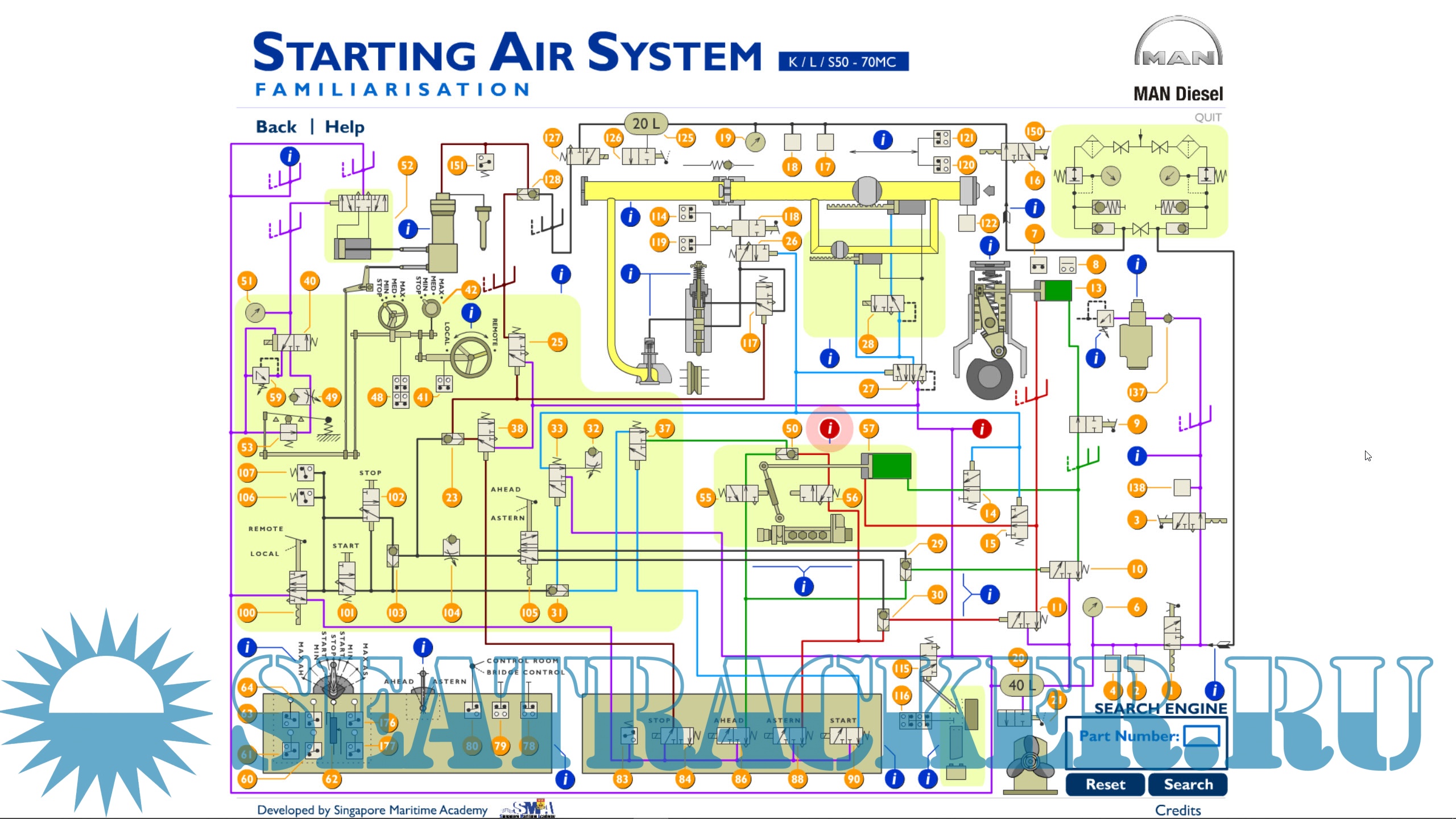 Симулятор пуско-реверсивной системы ДАУ ГД / Starting air system MAN B&W K/L/S50 - 70MC
