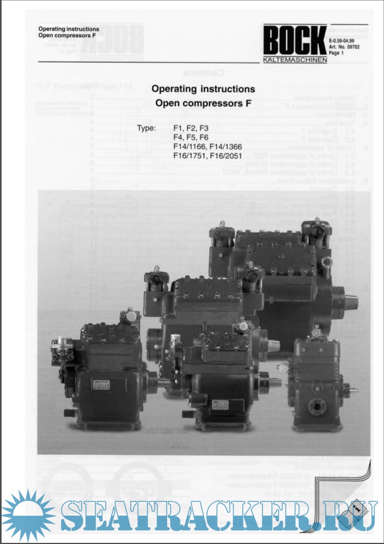 The following operating instructions describe the compressors in the F series in the standard version manufactured by Bock.