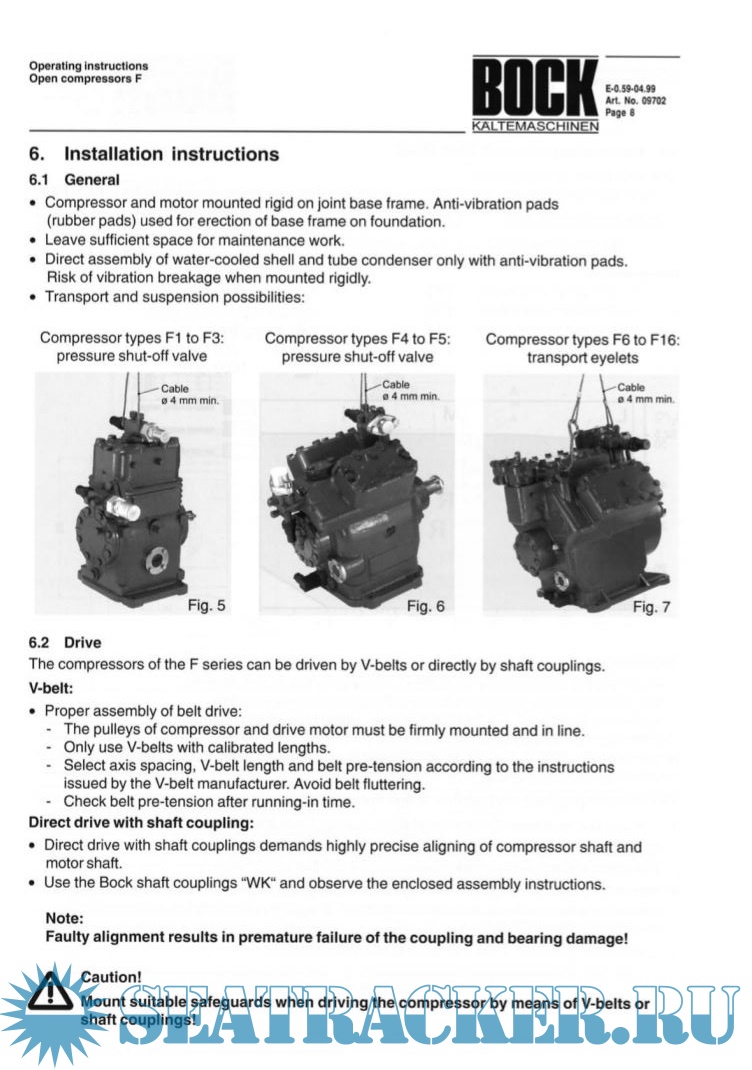 BOCK operation instructions for open compressors type F