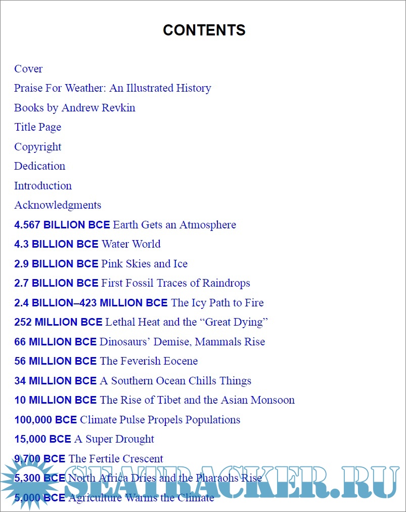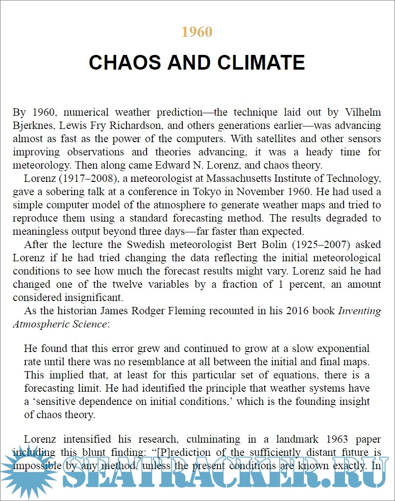 Description: This easy reading, illustrated book is a history of humanity’s evolving relationship with Earth’s dynamic climate system and the weather it generates. It is divided into a hundred short chapters, each of which is illustrated and dedicated to a year, or a period, and traces a particular aspect of the climate and its relationship with humanity. From prehistory to today’s headlines and tomorrow’s forecasts, topics covered are Earth's first atmosphere, the physics of rainbows, the deadliest hailstorm, Groundhog Day, the invention of air conditioning, London’s Great Smog, the Year Without Summer, our increasingly strong hurricanes, and the Paris Agreement on climate change, among others.