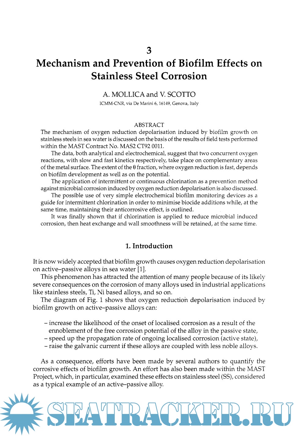 5. Practical Consequences of the Biofilm in Natural Sea Water and of Chlorination on the Corrosion Behaviour of Stainless Steels