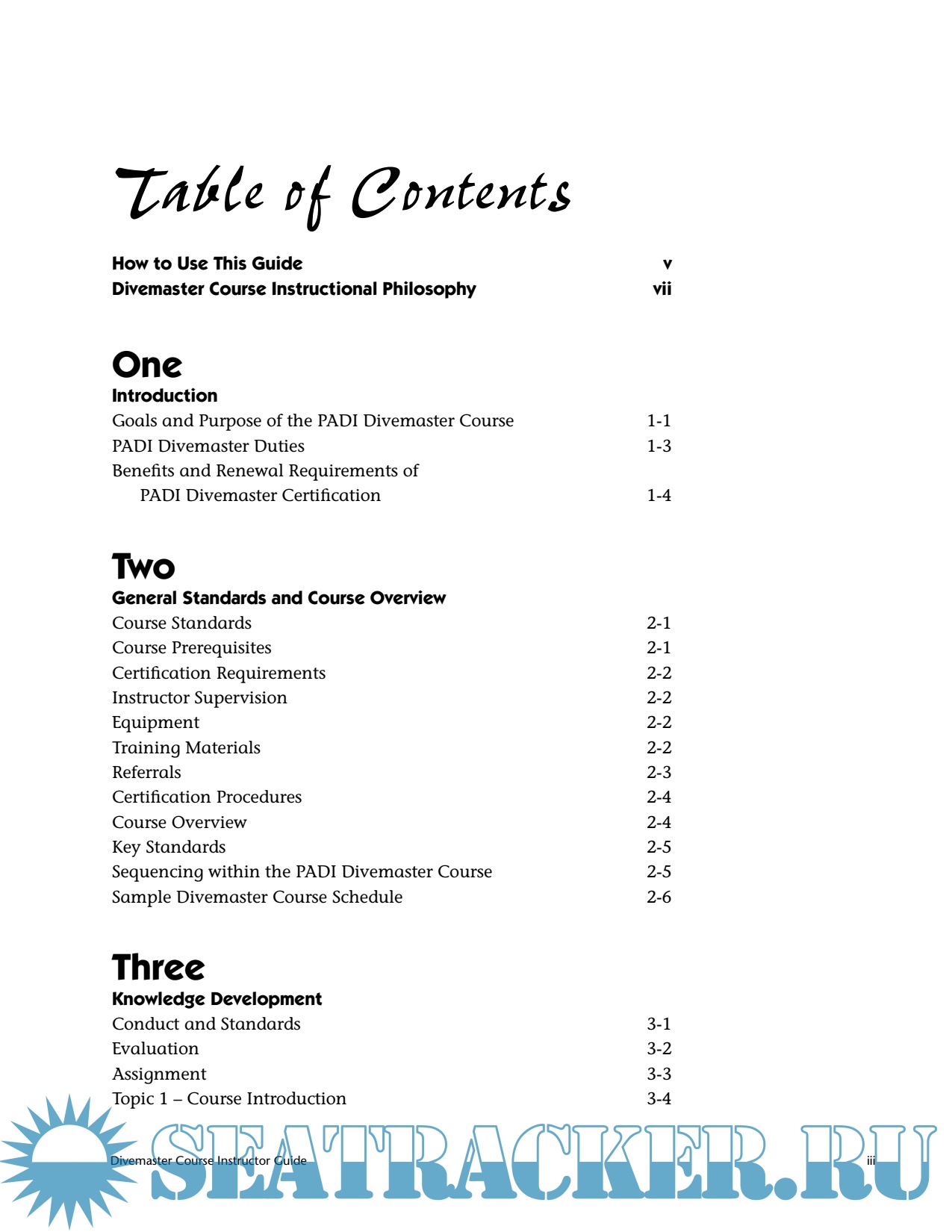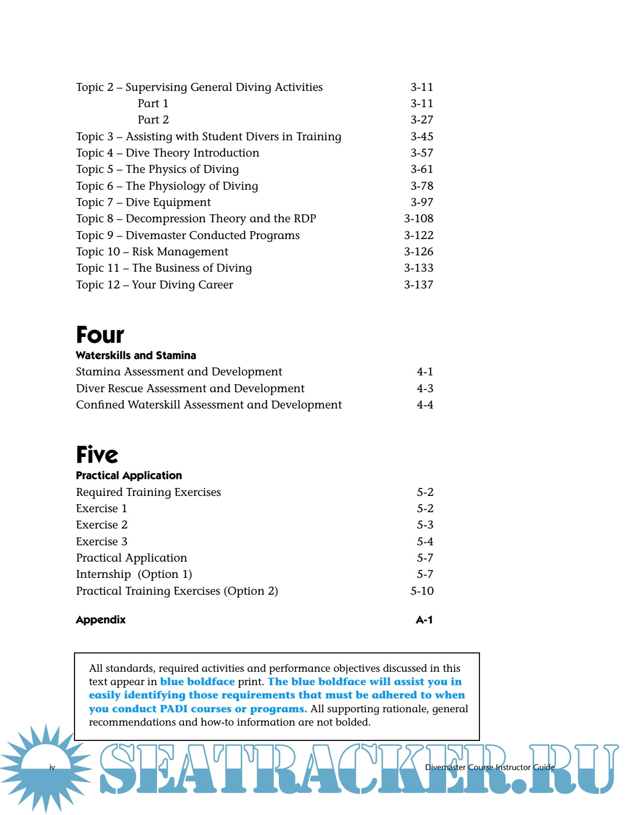 Year: 2004 Language: english Author: Professional association of diving instructors Genre: Guide Publisher: Professional association of diving instructors Format: PDF Quality: Scanned pages Pages count: 220 Description: The PADI Divemaster course teaches you to be a leader and take charge of dive activities. Through knowledge development sessions, waterskills exercises and workshops, and hands-on practical assessment, you develop the skills to organize and direct a variety of scuba diving activities.