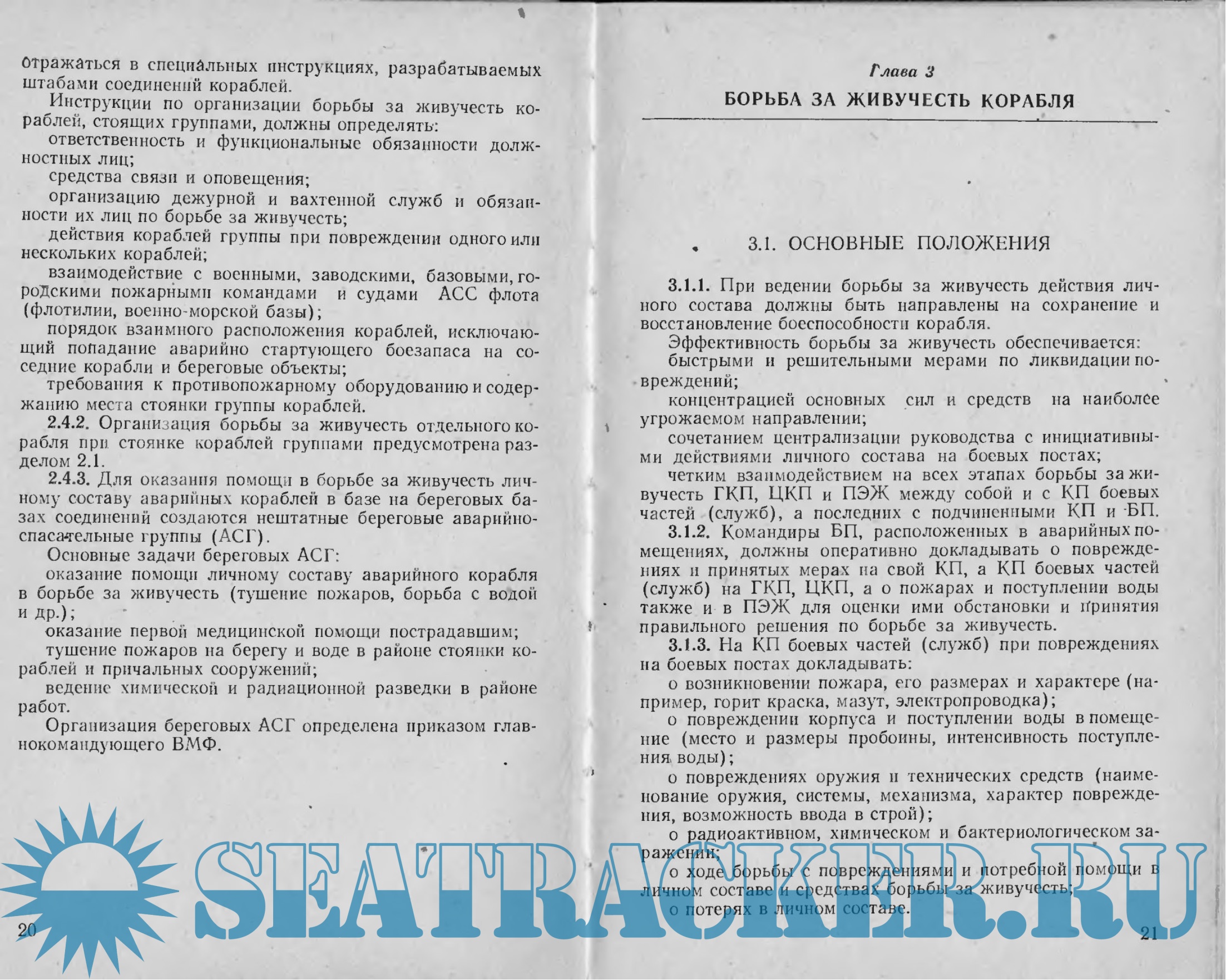 Описание: Настоящее Руководство определяет организацию, основные принципы и методы борьбы с пожарами, водой и за живучесть оружия и технических средств, а также порядок проведения мероприятий по борьбе по обеспечению живучести надводных кораблей Военно-Морского Флота.