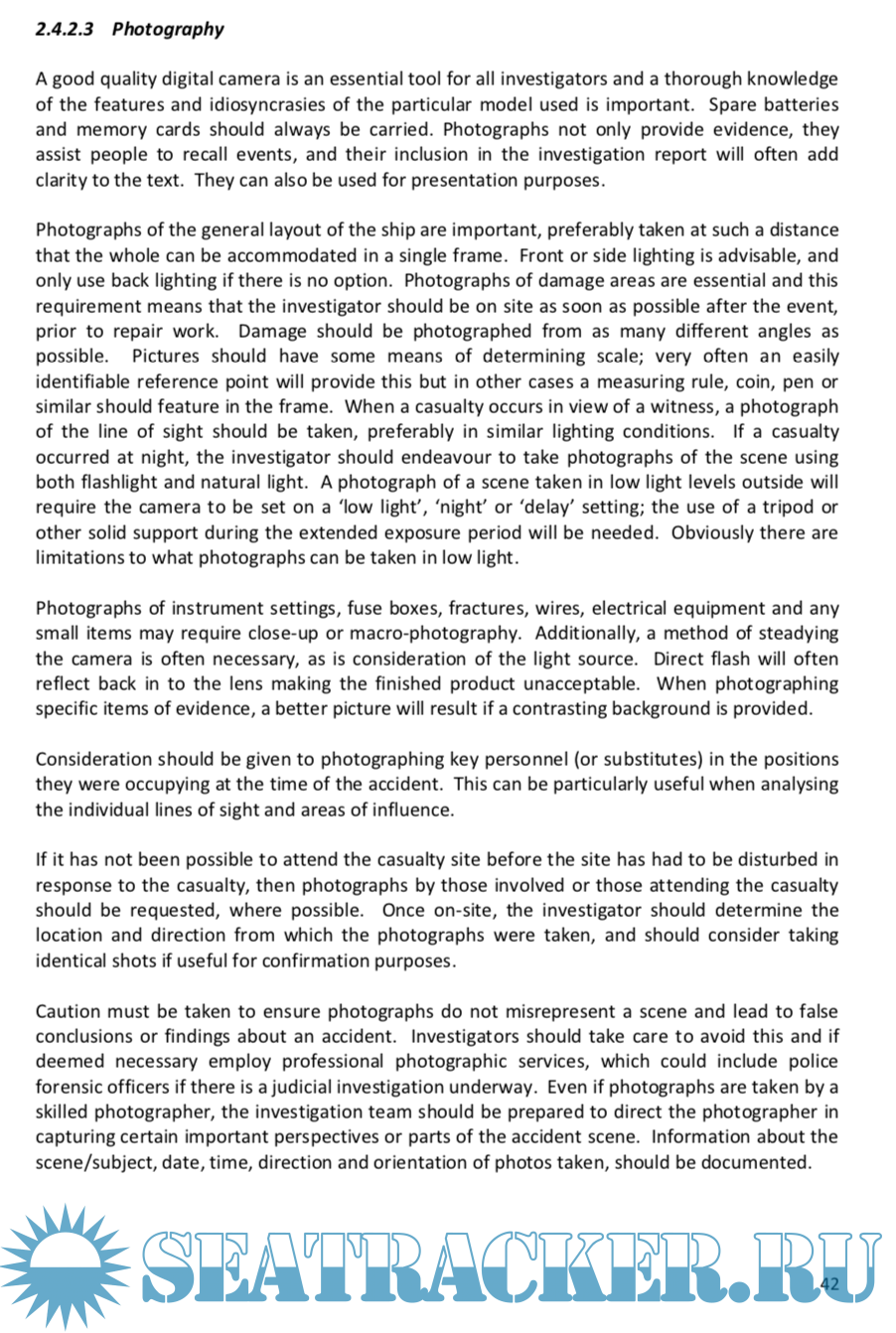 Year: 2014 Language: english Author: MAIIF Genre: Manual Publisher: MAIIF ISBN: n/a Format: PDF Quality: eBook Pages count: 173 Description: This manual is intended as support material for national marine investigation organizations which conduct investigations under the IMO Casualty Investigation Code (CI Code), which came into force on 1 January 2010. It has been collated from various sources and contains examples of industry best practice to assist investigators and investigation organizations in carrying out their roles. The intention of the manual is to build on the guidelines agreed by the IMO, to provide investigators with a basic platform from which to develop the necessary skills to carry out efficient and effective investigations, and to provide a ready reference tool. The Marine Accident Investigators’ International Forum (MAIIF) includes within its membership the chief investigators of many of the marine safety investigation organizations from around the world. One of its principal roles is to champion and promote best practice in marine safety investigation. The sole purpose of independent safety investigations into marine casualties and incidents is to improve future maritime safety and the prevention of pollution by ships by deriving the lessons that can be learnt following an accident. The principle of investigating marine casualties has been included, for many years in international maritime conventions, including UNCLOS,2 SOLAS3 and MARPOL.4 It should be noted, however, that the purpose of the various conventions may differ. While SOLAS does not provide for any sanctions that may result in court or disciplinary action, MARPOL (as implied in Article 4(2)) has provisions that may have adverse outcomes for individuals. The CI Code incorporates and builds on the best practices in safety investigation and seeks the promotion of cooperation and a common approach to marine casualty and marine incident investigation between States. While the CI Code specifies some mandatory requirements, it also recognises the variations in international and national laws and includes many recommended practices as a result. The thrust of the CI Code is not one of prosecution or sanction, rather it is solely focused on investigations that result in safety outcomes and which do not attribute blame or apportion liability. Safety investigations under the CI Code are primarily focused on understanding the reason why an unsafe action or condition leads to the casualty and the environment, physical and organisational, in which the casualty or incident occurred.