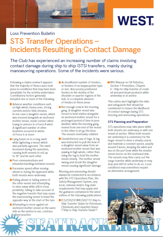 Year: 2020 Language: english Author: West P and I Club Genre: Periodical (magazine) Format: PDF Quality: eBook Pages count: 4 Description: The Club has experienced an increasing number of claims involving contact damage during ship to ship (STS) transfers, mainly during maneuvering operations. Some of the incidents were serious.