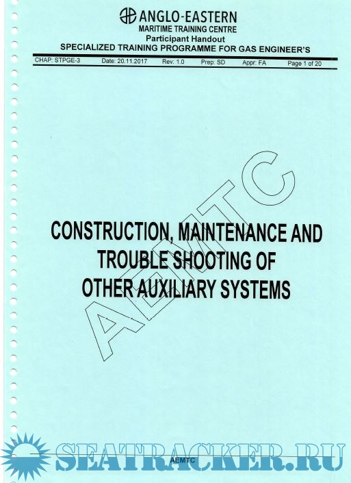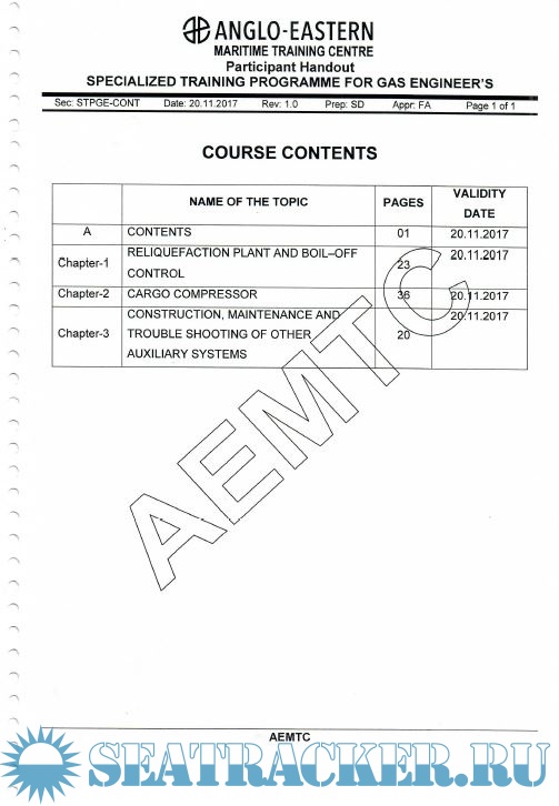 Year: 2017 Language: english Author: AEMTC Genre: Training courses Publisher: Anglo Eastern Maritime Training Institute Edition: Rev. 1.0 Format: PDF Quality: OCR with errors Pages count: 96 Description: Handout of A Three Day Course for Gas Engineers held at Anglo Eastern Maritime Training Centre.
