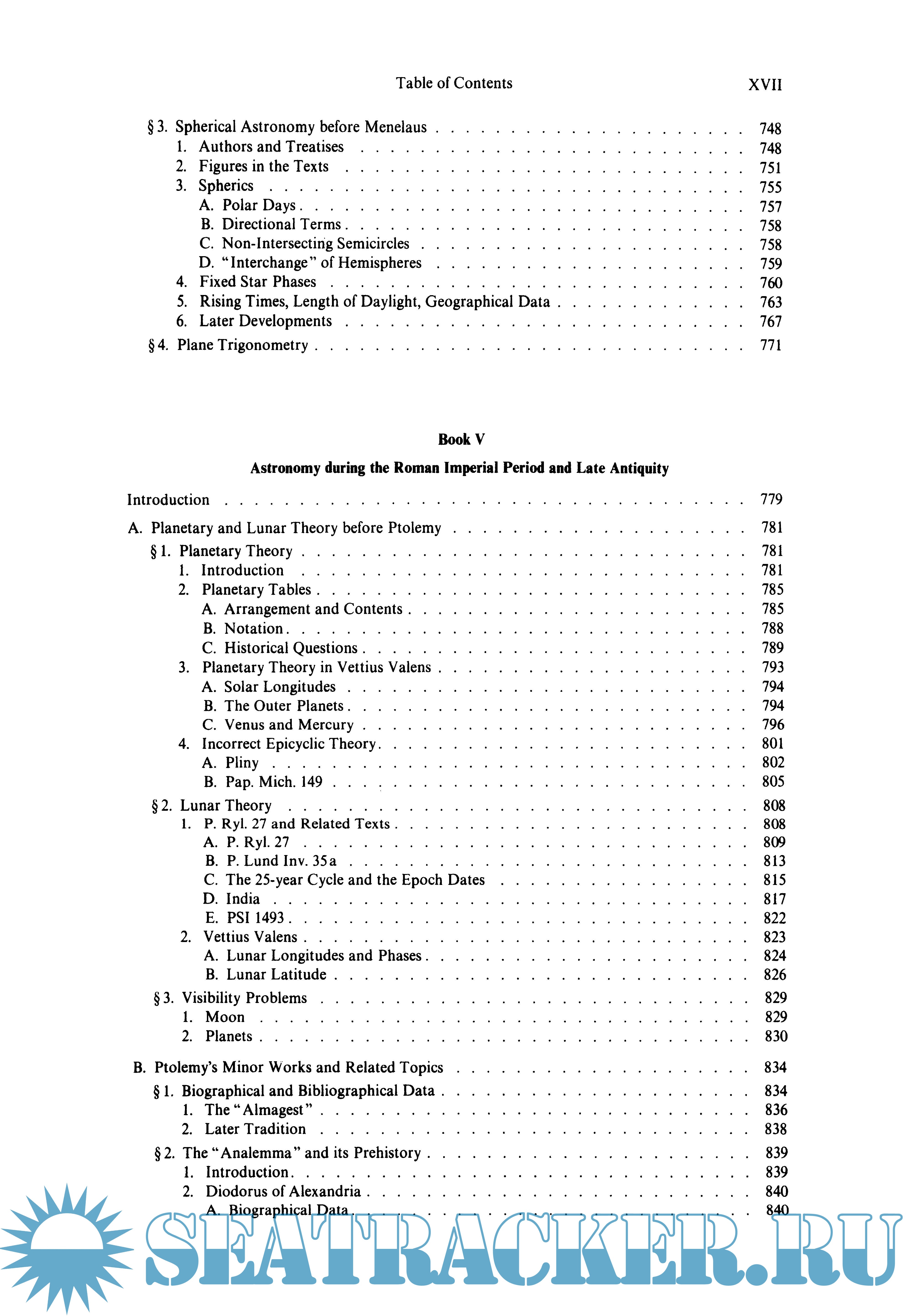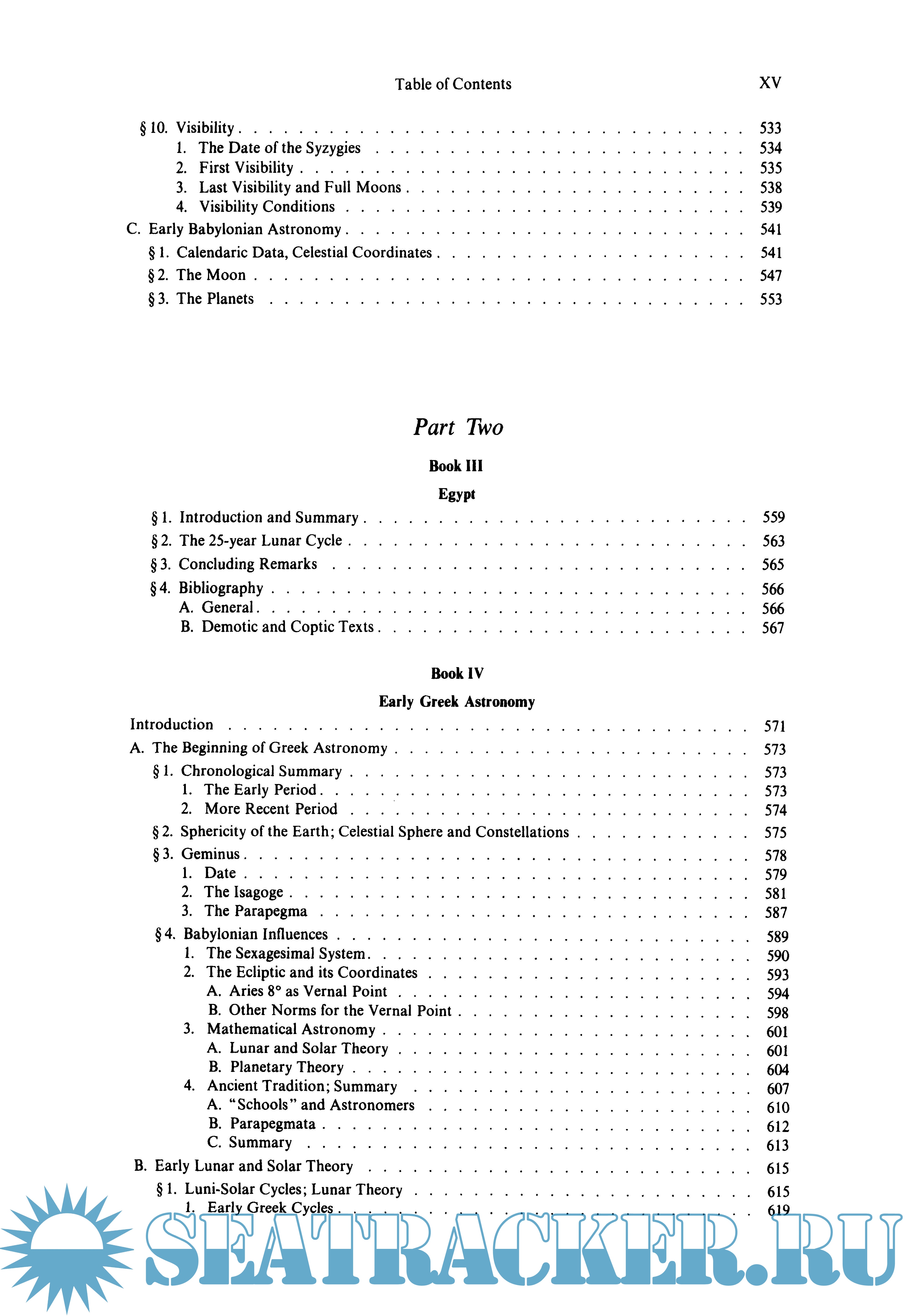 Year: 1975 Language: english Author: 0. Neugebauer Genre: Handbook Publisher: Springer ISBN: 978-3-642-61912-0 Format: PDF Quality: OCR without errors Pages count: 1468 Description: At once the most comprehensive and detailed history of ancient astronomy undertaken. From Meton of Athens in the fifth century B.C. and the unnamed scribes of Babylon, through Hipparchus and Ptolemy, to the shadowy figures of Olympiodorus and Stephanus in the early period of the Byzantine Empire, from primitive shadow tables and calendars of star phases, through Babylonian ephemerides and the Almagest, to the odd fragments preserved in late astrologers, the entire panorama of astronomy is set forth.