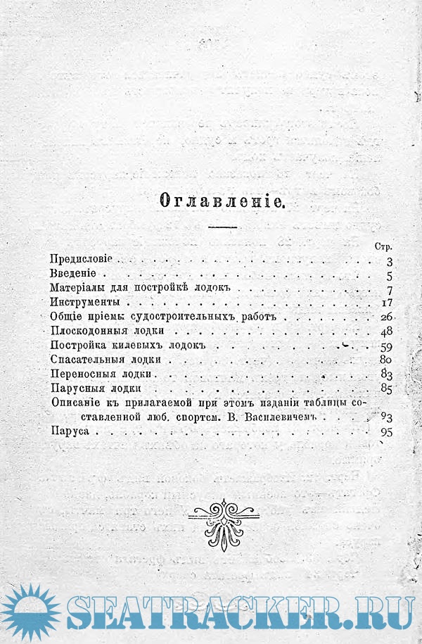 При составлении руководства по строительству лодок автор опирался на классическое английское, составленное в 1880 г. Адрианом Нейсоном и являвшееся одной из лучших в своей области книг. В книге П.А. Федорова рассмотрены технологии строительства лодок разных типов: лодок грузовых и пассажирских, предназначенных для плавания по рекам и каналам; вспомогательных лодок при морских и речных судах; лодок для катания и спортивных; специальных спасательных плавучих средств. Лодки разделяются на плоскодонные и килевые. Автор изучает материалы, наиболее пригодные для их строительства, инструменты, общие приемы судостроительных работ. Среди разновидностей лодок представлены и спасательные, переносные, ходящие под парусом. Рассказывается о парусных снастях. К изданию прилагалась большая таблица с изображениями лодок различных типов и их частей.